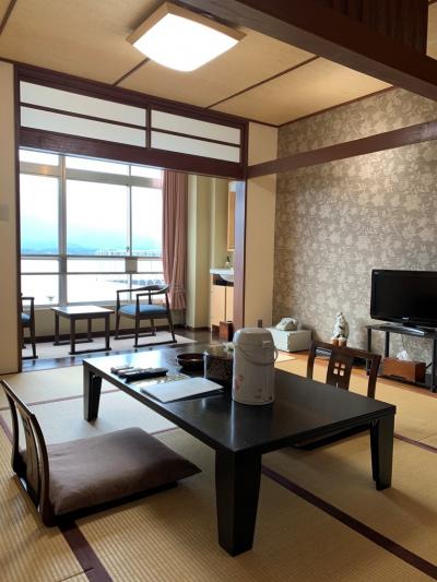 東武鉄道の足利市駅のすぐそばにあるホテルです。大型宴会・会議・セミナーなども可能な、足利のフラッグシップホテル...という感じですが、宿泊料はリーズナブルです。客室はバブル期の設備をもとに頑張ってアップデートしてます(冷蔵庫に見えるものは保冷器です)。朝食は渡良瀬川が見渡せる展望レストランにて、ご時世もありビュッフェ形式ではなく定食式でした。観光はもちろん、ビジネスやゴルフにもよさそうなホテルです。