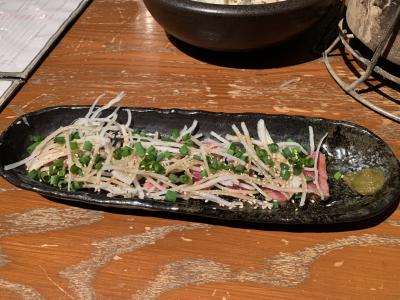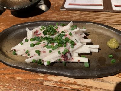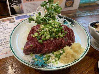 塩原温泉郷の古町温泉エリアにある居酒屋です。古民家風の粋な店内で、カウンターの席へ。お通しをはじめ、頼んだメニューはすべてボリューム多めでした。馬刺しもいいサシが入って美味いですし、店の名物の”母手寿(ぼてじゅう)”は、この店のオーナーが子供の頃に母に作ってもらった”お焼き”を現代風にアレンジした、チーズミックスお好み焼きのような粉もの...こういう変わり種もいいです。宿の料理が期待薄なら、この店をお勧めします。