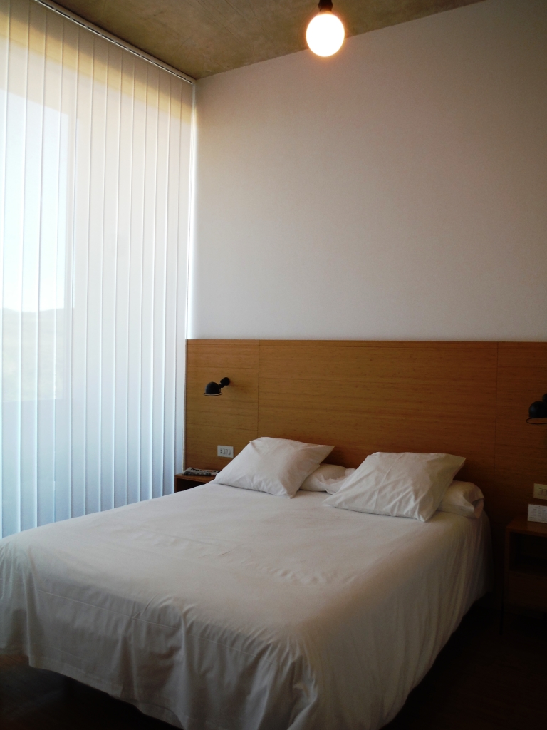 スペイン、ラ・リオハ州の州都であるログローニョから南西へ十数キロのところにあるワイナリーホテルです。ボデガ(ワイナリー)、フィンカ・デ・ロス・アランディノスに併設されているホテルで、広大な葡萄畑の真ん中に立ち、ワイン醸造施設を備えています。二人で18ユーロほどでガイド付き(英語)のワイナリー見学ができます。宿泊料は極めてリーズナブル、客室はまさにデザイナーズホテルのもの、バスルームが格納されているのは面白かったです。レストランは夕・朝食ともなかなかのハイクオィリティーでした。ログローニョ近辺を訪れる際には、是非おススメのホテルです。