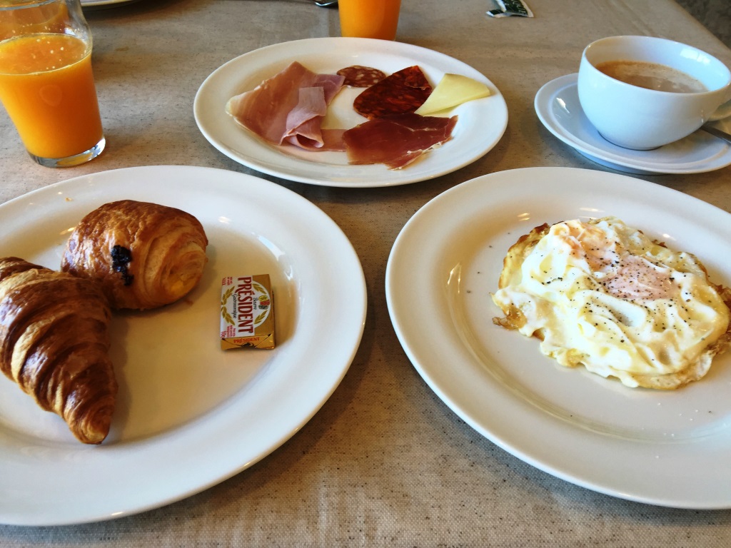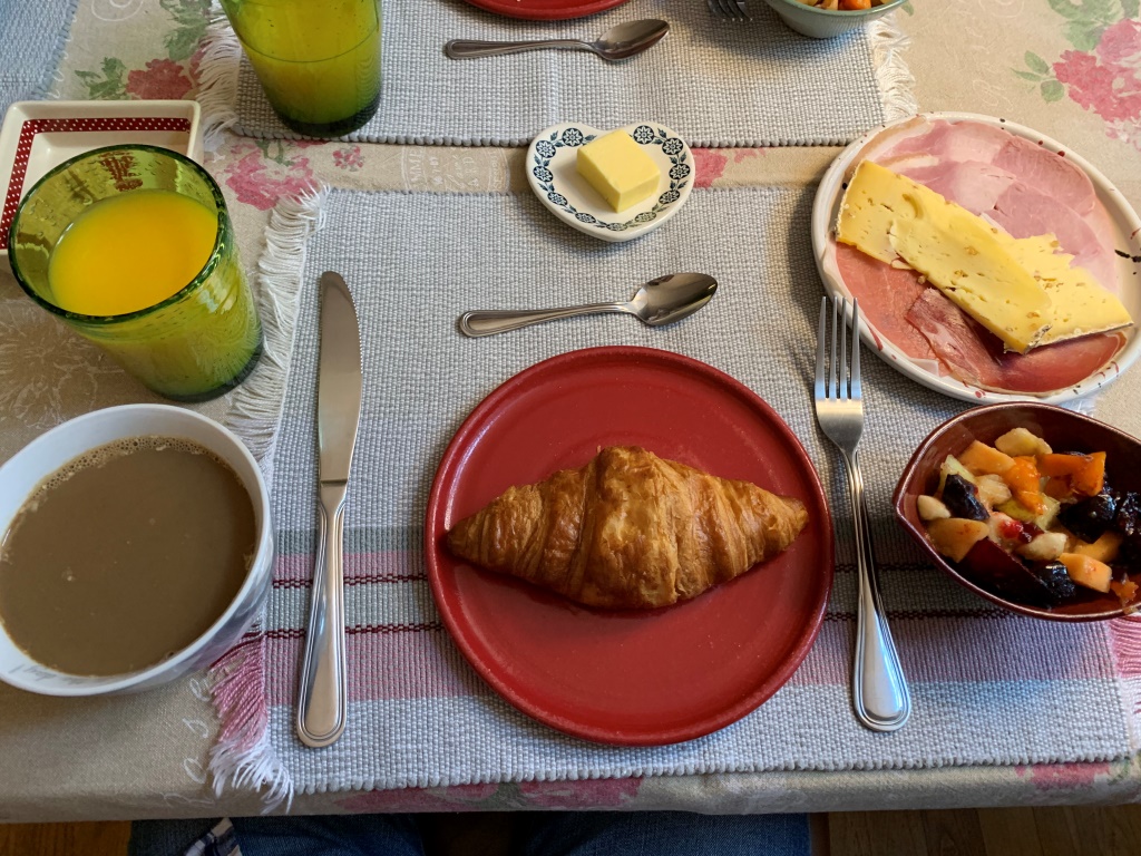 ヴィルフランシュ・ド・コンフランの城壁の中にあるB&Bです。城壁の門を入ってすぐに、街並みに溶け込んで建つアンティークなアパートメントです。広い部屋のインテリアはアンティーク&キュートで妻が大変気に入ってました。朝食はB&Bらしくシンプルな家庭的なもの。この町に住むように泊まる体験ができます。