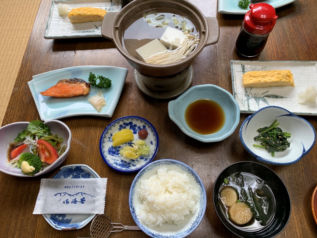 諏訪湖までは歩いてすぐ、上諏訪駅からも徒歩圏の好立地の民宿です。エントランスも雰囲気があり、中庭もある昔はちょっとした和風旅館だったんだろうという感じです。温泉はしっかり掛け流しで家族風呂もあり。朝食も品数充分で美味しく、大変お得で満足度が高い宿でした。