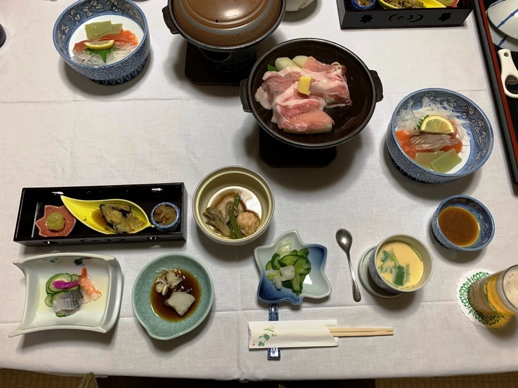 鹿教湯温泉の真ん中南寄り、観光協会の近くにある宿です。建物の天辺に掲げられた看板もかなり年季が入っているように、建物は完全に昭和ですが、清潔に保たれており問題なく快適でした。風呂は内風呂のみですが湯量豊富な源泉かけ流しで大きな湯船、温泉効果をじっくりと味わえます。料理は標準的かな…ですが人懐っこいおかみさんの対応を含め隣の別所温泉より庶民的な料金で、手軽に良質な温泉が楽しめます。