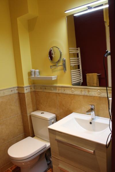 カンプロドンの市街、町の中心(ローマ橋の近辺)から南に300mほどの好立地です。ホテルに駐車場はありませんが、ホテルの南徒歩3分に公共の大きな無料駐車場があります。家族経営の様ですが、しっかりした造りの建物で小さなホテル並みの設備です。朝食メニューもしっかり食べごたえあり、おかみさんと呼びたくなる感じのオーナー、マリアさんの明るく親切な対応にも心なごみます。