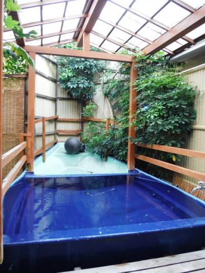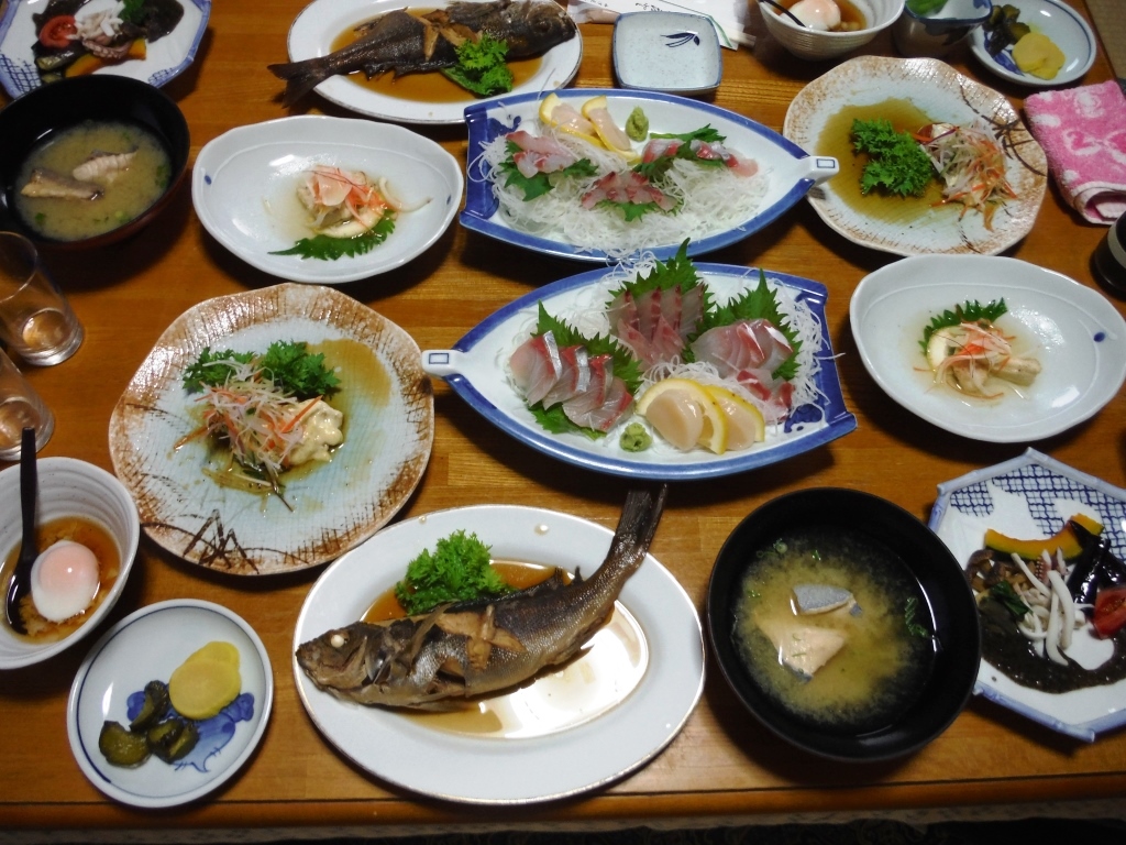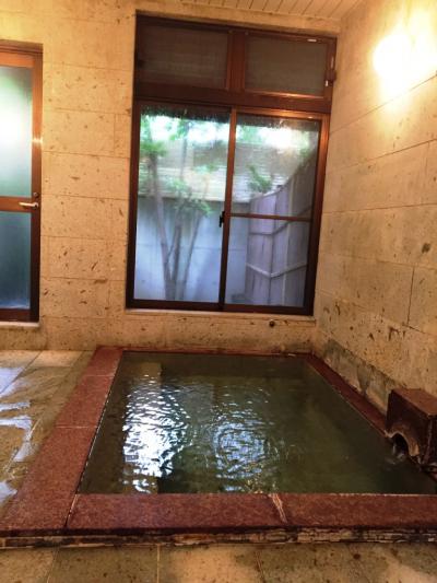 土肥(とい)ではなく、その隣村と言っても良い小土肥(おどい)地区の、海岸から歩いて10分足らずのところにある温泉民宿です。建物は新し目できれいで、バストイレは別ながら旅館の様な風情です。風呂は内湯と露天があり泉質は良く(源泉掛け流し)、私たちの訪問時は週末にもかかわらずお客さんが他におらず、貸切で利用させていただきました。料理は旬の磯料理が主体で質もボリュームも充分、週末でこの料金でこの内容なら言うことなしです。