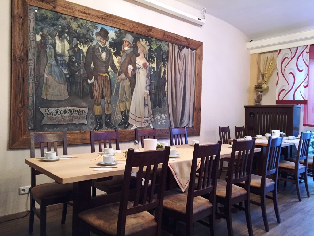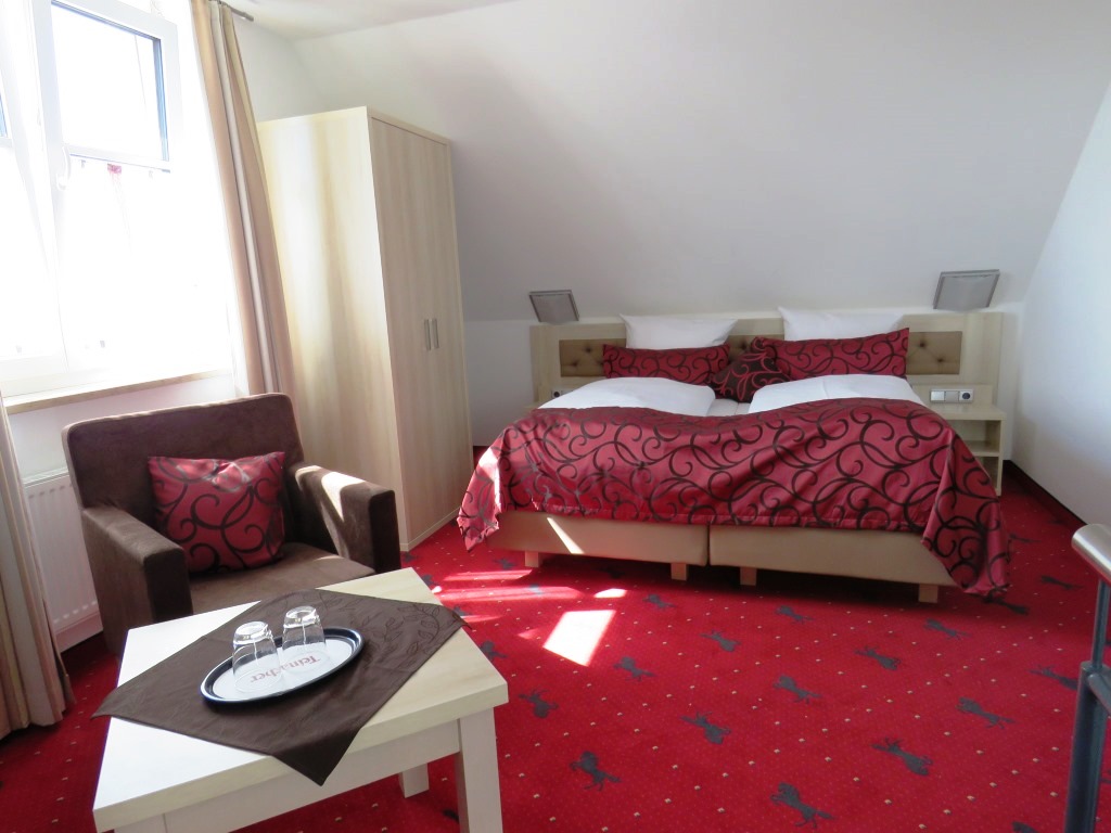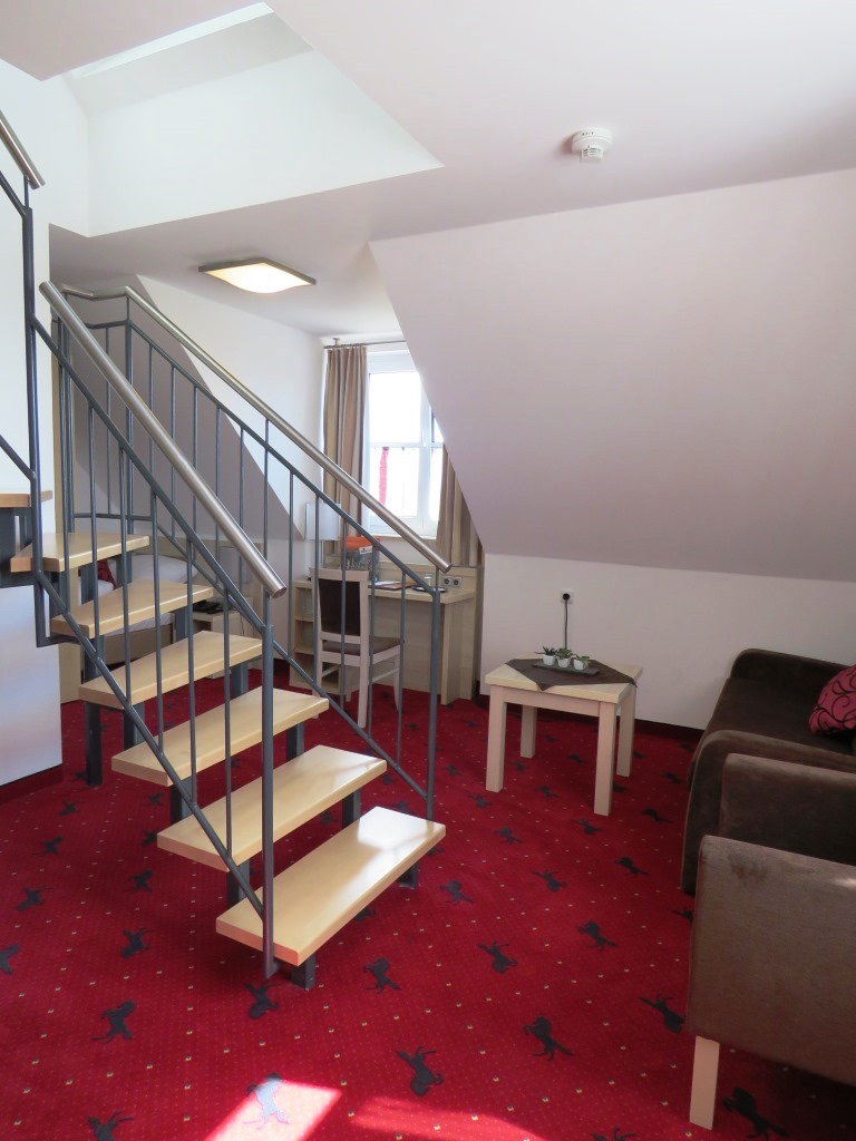 旧市街の北東のちょっと外れにあり、郊外型のため駐車場は広いです。建物は歴史ある本館と別館「Toppler Haus」に分かれていて、泊まったのは別館の方でした。メゾネット式のジュニアスイートで居心地は良く、朝食は本館付属のレストランでハム・たまご・野菜があり平均的だが充分なレベル。旧市街の見所まで徒歩圏内で、ドイツの有名観光地ホテルがトップシーズンでこの料金なら納得です。
