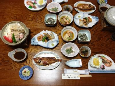 西伊豆、土肥温泉の海岸線から少し入った川沿いにある民宿です。建物は古いですが、部屋はコタツがあり、タオルや歯ブラシといったアメニティはしっかり備えられています。風呂は漁船を改造した源泉かけ流し、相当熱くて多少水で薄めましたが、源泉を満喫できます。料理は海辺の温泉らしく地物の海の幸中心、部屋食でゆっくり味わうことが出来ました。
