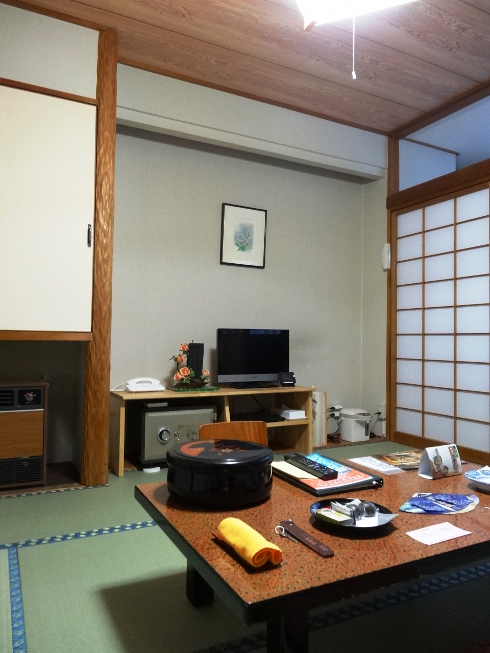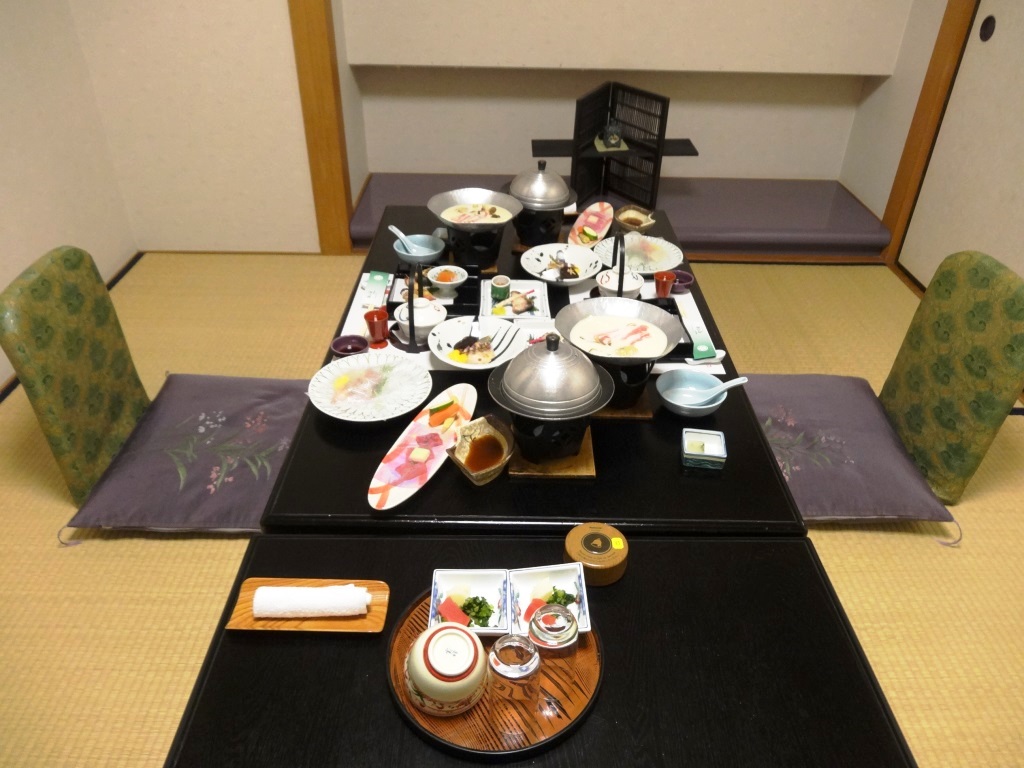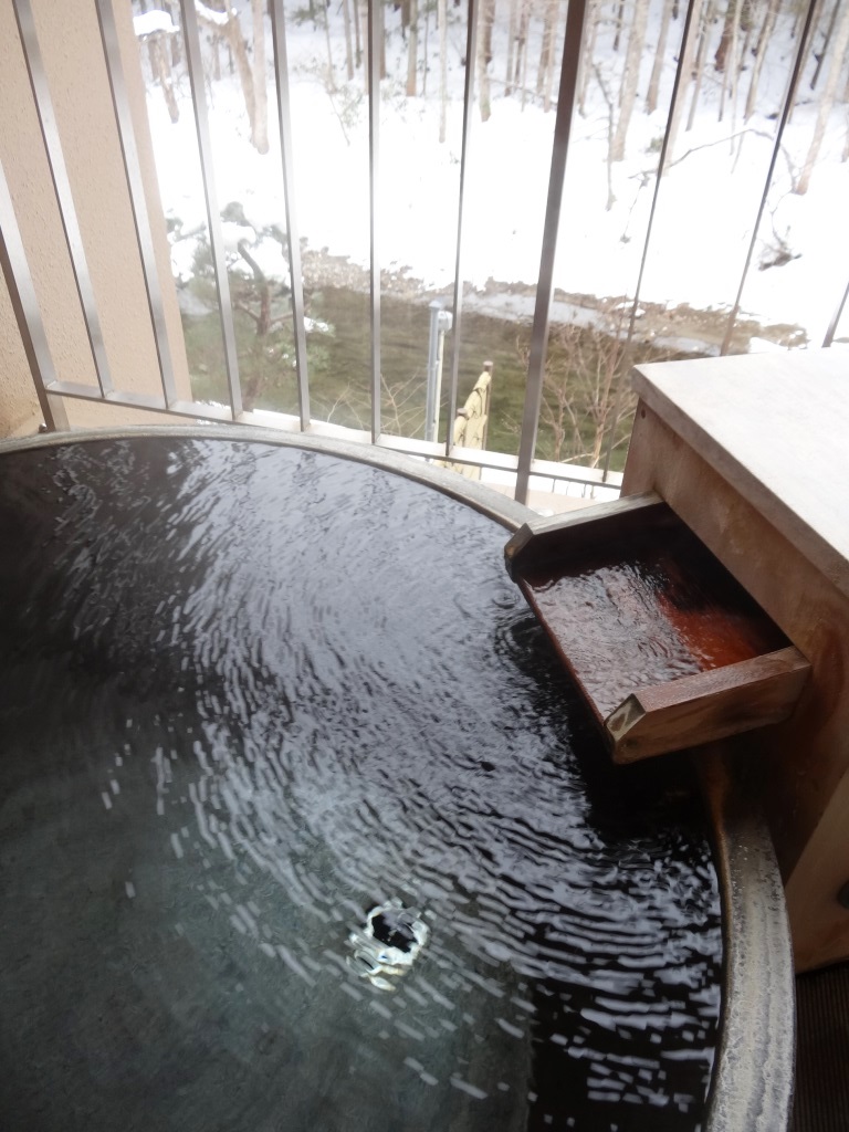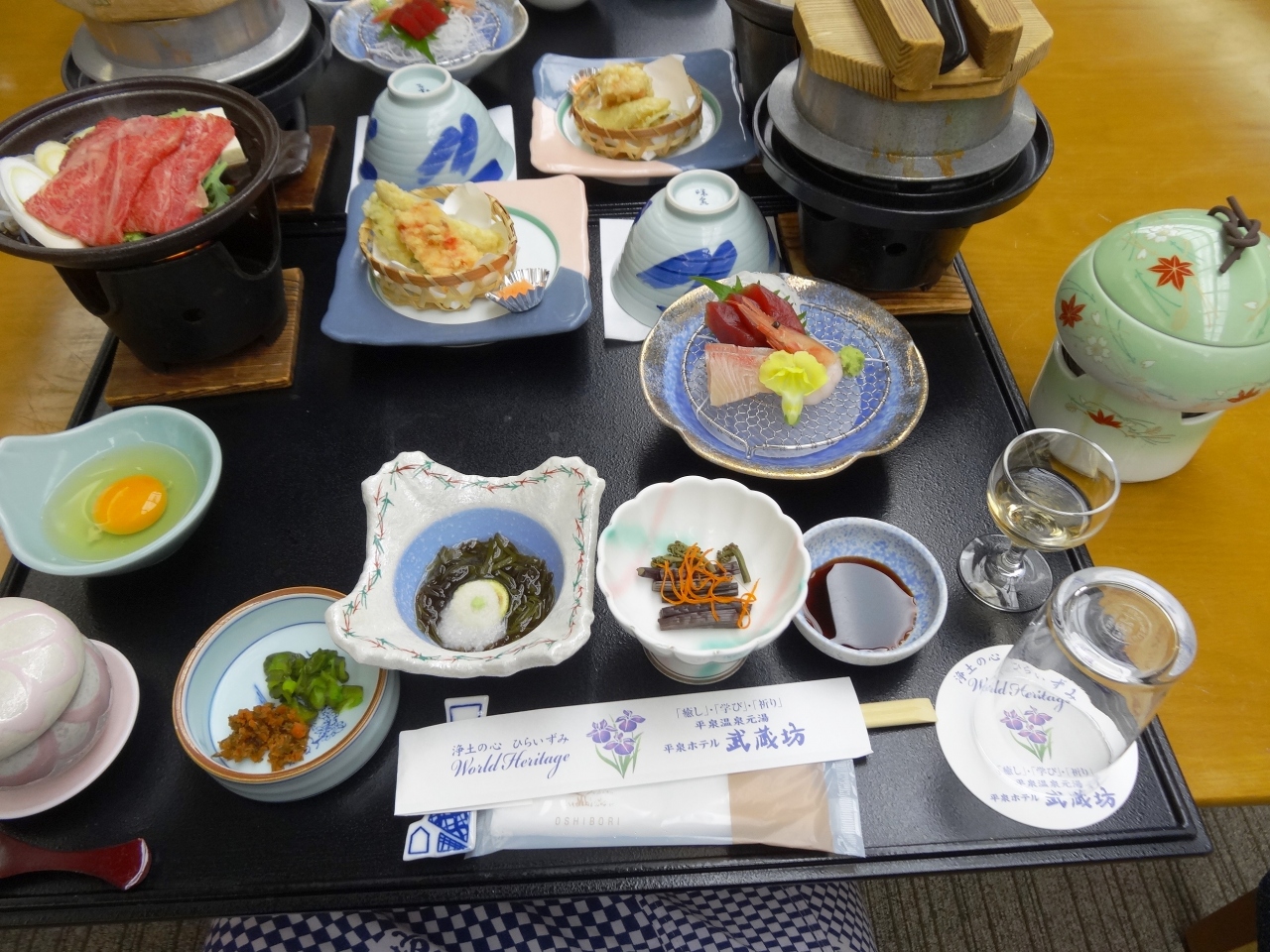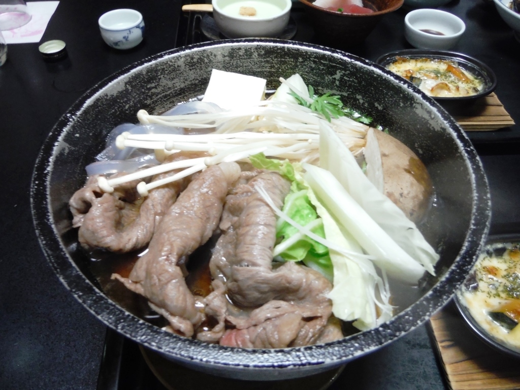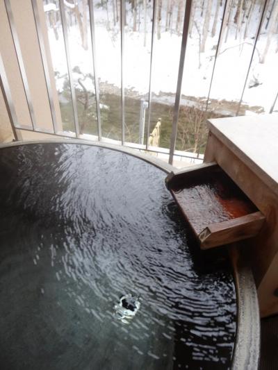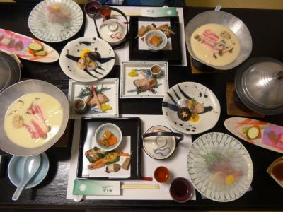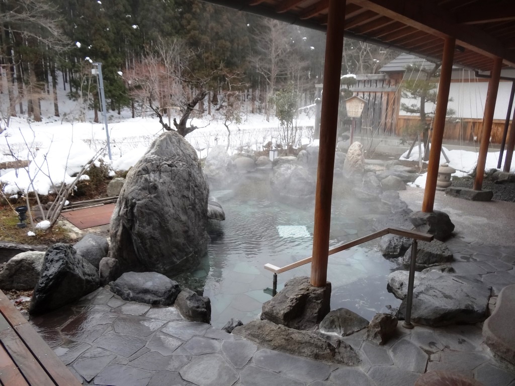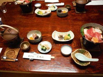 小野川温泉の宿です。天然温泉かけ流しの貸切風呂は、硫黄の匂いで温泉の雰囲気抜群、ゆっくり温まることができました。食事は朝夕とも部屋食で、夕食は米沢牛のすき焼きを楽しめました。建物や設備は普通で、露天風呂が無いのが惜しいですが、従業員の方々の明るい対応が印象に残る宿でした。