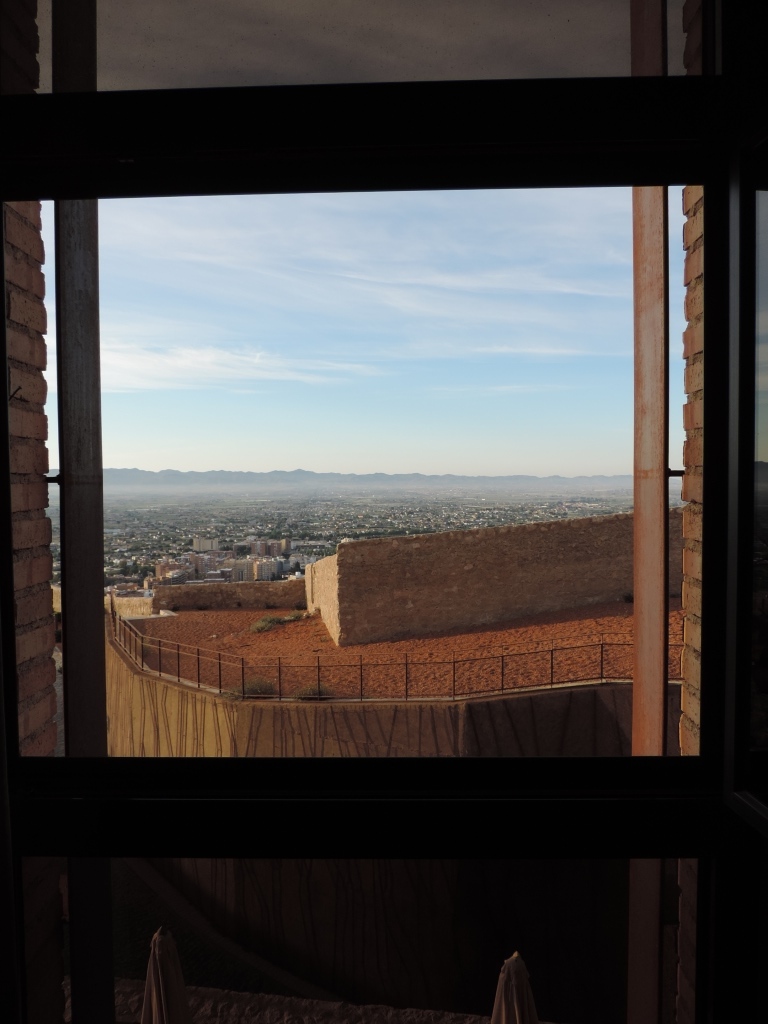 ロルカの町を見下ろす丘のてっぺんにあるパラドール(スペイン国営ホテルチェーン)です。ロルカ城跡に寄り添い、そして15世紀のシナゴーグを包むように新しく建てられたモダンかつ歴史遺産と調和を狙った建物が他のパラドールに無い個性を感じさせます。建物は新しいため施設や客室は快適、部屋からは市街のみならず広大な大地の先の山々まで見渡せます。これだけの立地と設備そして歴史遺産が伴ってこの宿泊料金は驚きの安さです。2011年にスペイン南部地震で大きな被害を受けた町ですが、このロルカ城の復活とともに町の復興を願います。