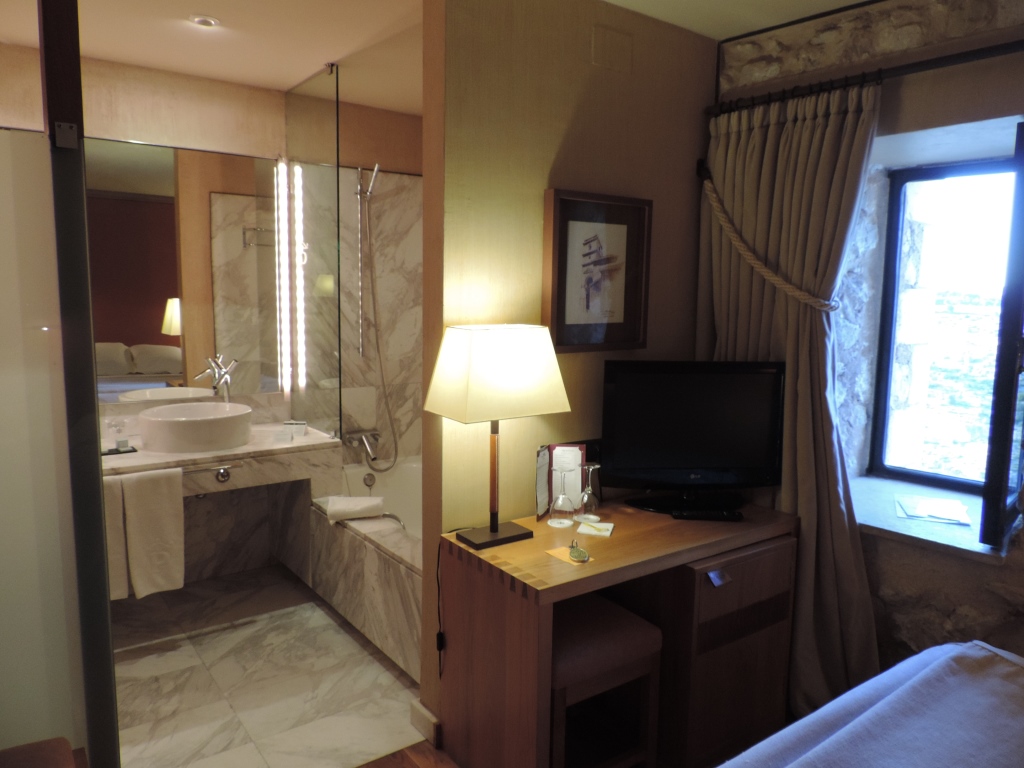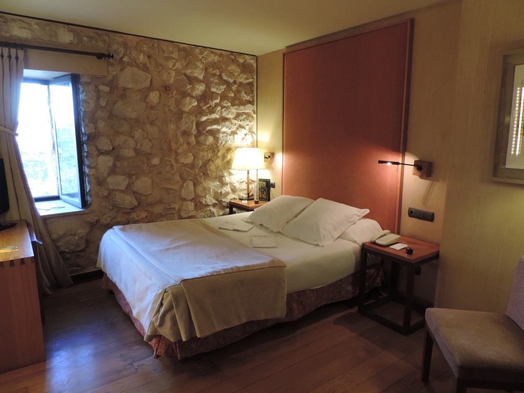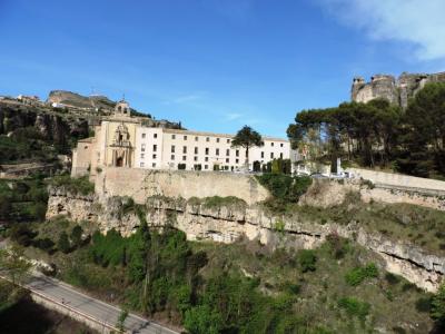クエンカ郊外の高台にあり、クエンカ名物の「宙づりの家」やその周辺の旧市街に近い場所にあるパラドール(スペイン国営ホテルチェーン)です。16世紀の修道院を改築したパラドールであり、泊まった部屋は「宙づりの家」をはじめとした旧市街が窓から見渡せる部屋であり、なかなか素晴らしかったです。(パラドールのサイトで普通の部屋で予約したら、アップグレードはいかがですか?と勧められ、それにまんまと乗ってしまいました。でも、+20ユーロなので良かったと思います。) また、レストランでは地元の料理が楽しめます。