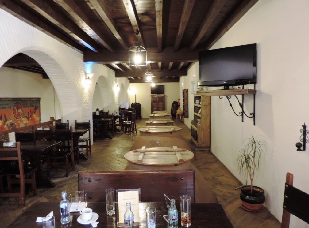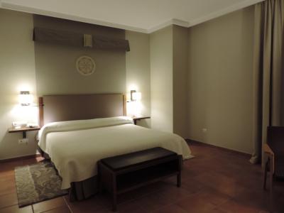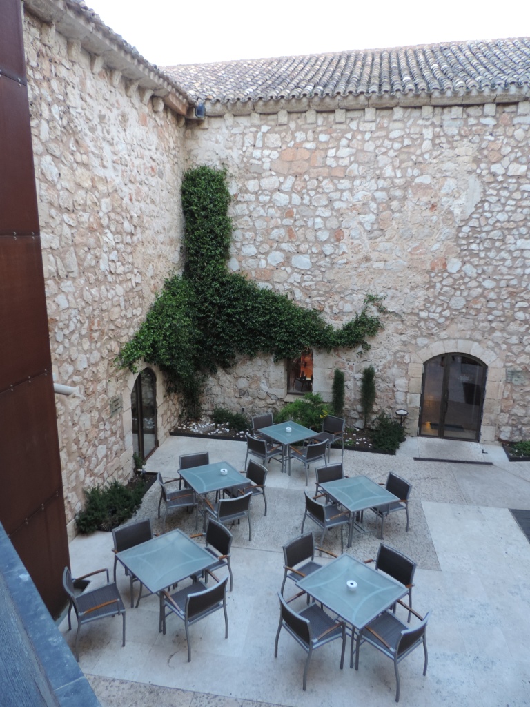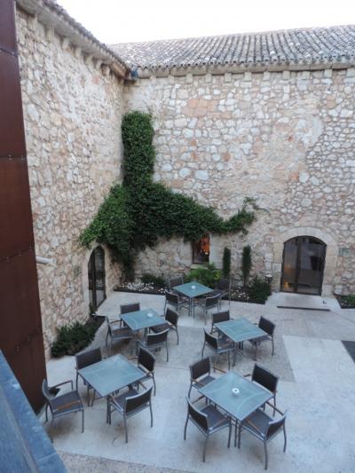 16世紀のフランシスコ修道院を改装したパラドール(スペイン国営ホテルチェーン)です。エントランスの庭園をはじめとして多くのパティオを有し、廊下や客室にもアンティークな雰囲気が漂っています。昔の酒造庫を改装したバルには大きな瓶が飾られていました。また、ロケーションも良く、旧市街や美しいマヨール広場まで徒歩ですぐです。