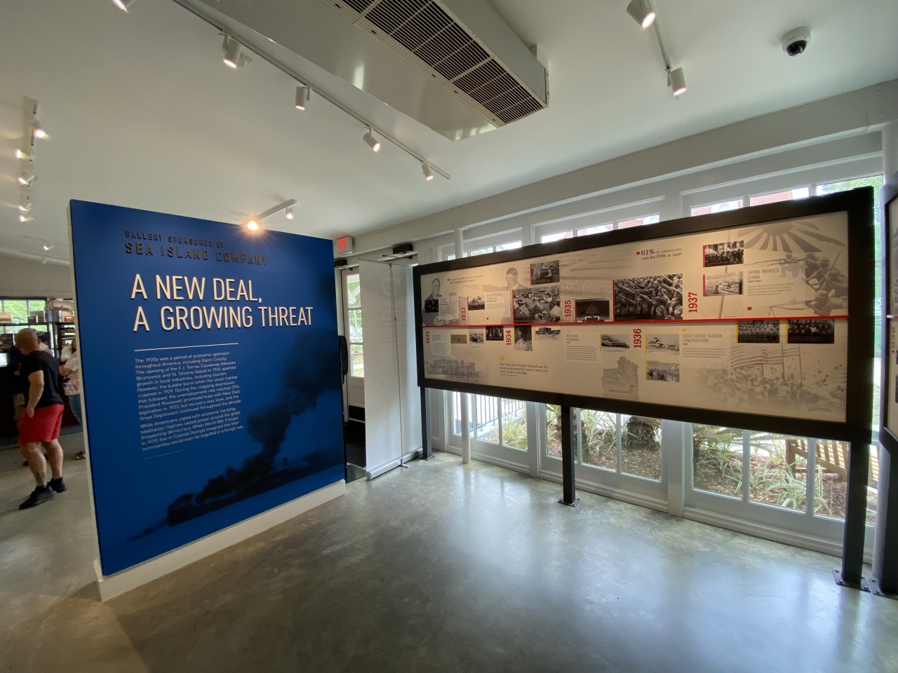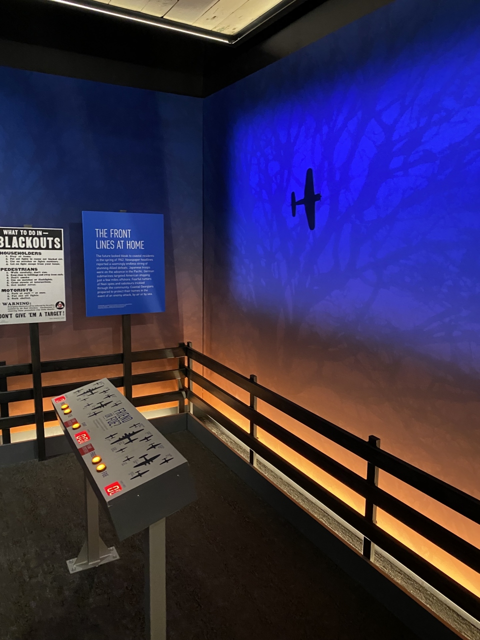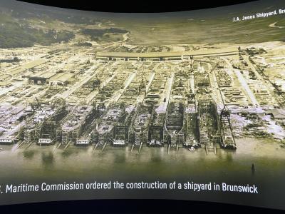 島の北東のイースト・ビーチ方面へ。ここに「第二次大戦ホームフロント博物館(World War II Home Front Museum)」があります。ホームフロントとは日本語で言うなら”銃後”…直接の戦場ではない後方、という意味です。アメリカ建国以降、2度の世界大戦も含めてアメリカ本土が戦場になったことは無いので、ここで第二次大戦の博物館と言われても最初はピンときませんでした。第二次大戦中、ブランズウィック造船所では多くの船が建造され、ヨーロッパ戦線へ軍需物資を運んでいました。その軍事物資の補給を断つべく、ドイツのUボートが大西洋を渡ってこの近海までやってきて輸送船を狙ったのです。これにより多くの犠牲者が出ました。これが、このゴールデン・アイルズがかつて関わった戦争でした。第二次大戦の博物館がここにある意味が腑に落ちました。
