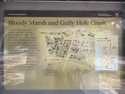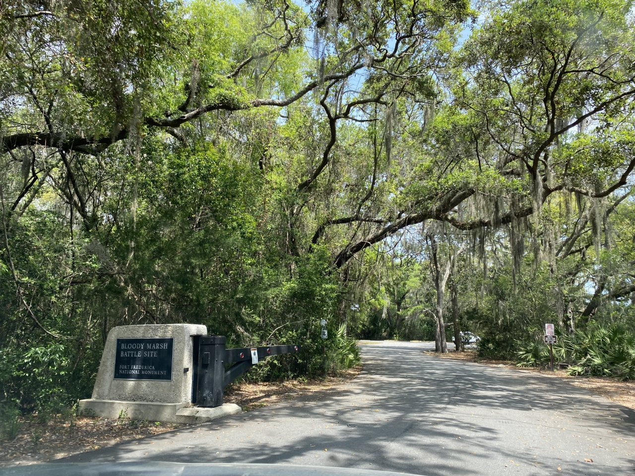 オールド・デミア・ロード沿いのゲートが目印です。ジョージアがイギリスの植民地だった時代、島にあるフレデリカ要塞を巡って1742年の7月7日にイギリス軍とスペイン軍がここで激突しました。結果はイギリス軍が勝ち、これによりイギリスによるセントシモンズ島の支配が固まったとされます。ここに広がる沼がスペイン軍の血で染まったことから「ブラッディ・マーシュの戦い」として言い伝えられているそうです。今は美しいリゾートですが、植民地時代には血なまぐさい場所だったんですね。