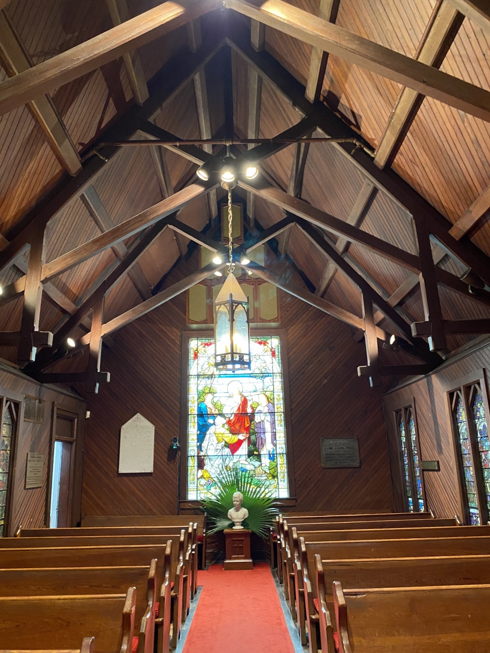 フレデリカ砦のすぐ近くにあります。ジョージア州の古い教会のひとつで、元の建物は南北戦争で破壊されましたが、1884年にアンソン・ダッジによって、インドへのハネムーン中に亡くなった妻エレンへの追悼のために再建されたそうです。入口に座っておられた管理人らしき方に断り中へ。快く迎え入れていただきました。木製のトラス構造の素朴な美しい教会。ステンドグラスがまた素朴で美しい。良い意味でアメリカらしくない教会でした。