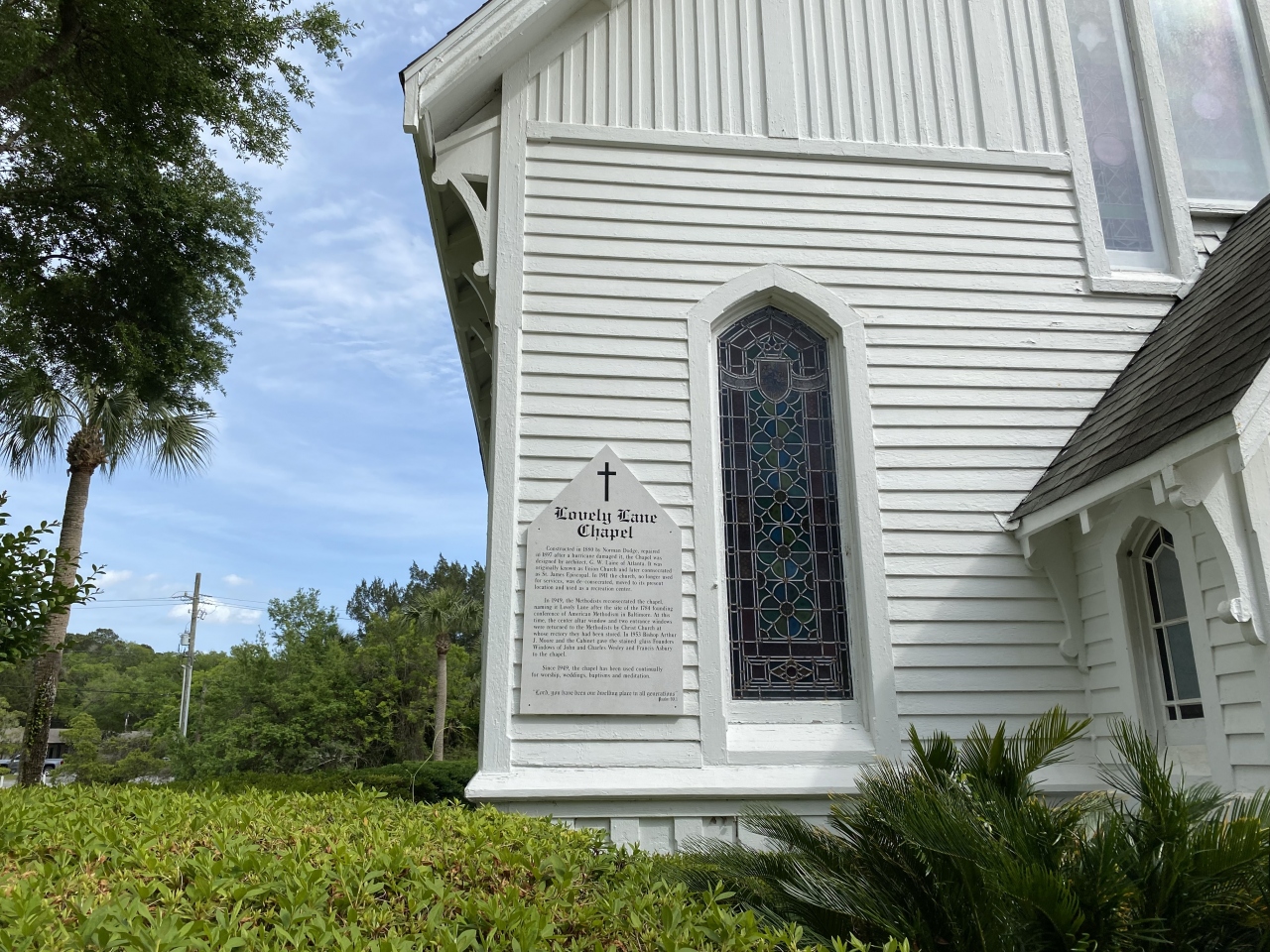マッケイ川沿いのメゾヒスト・センターにその協会はあります。ここに佇むのが1880年に建てられた「ラブリー・レーン礼拝堂(Lovely Lane Chapel)」、セントシモンズ島で最も古い教会がここなのだそう。その名の通り愛らしい教会でした。