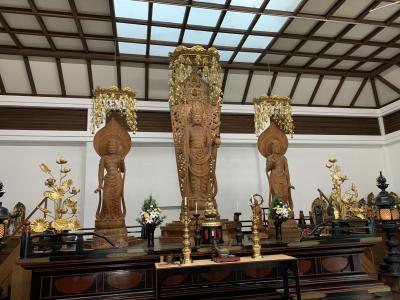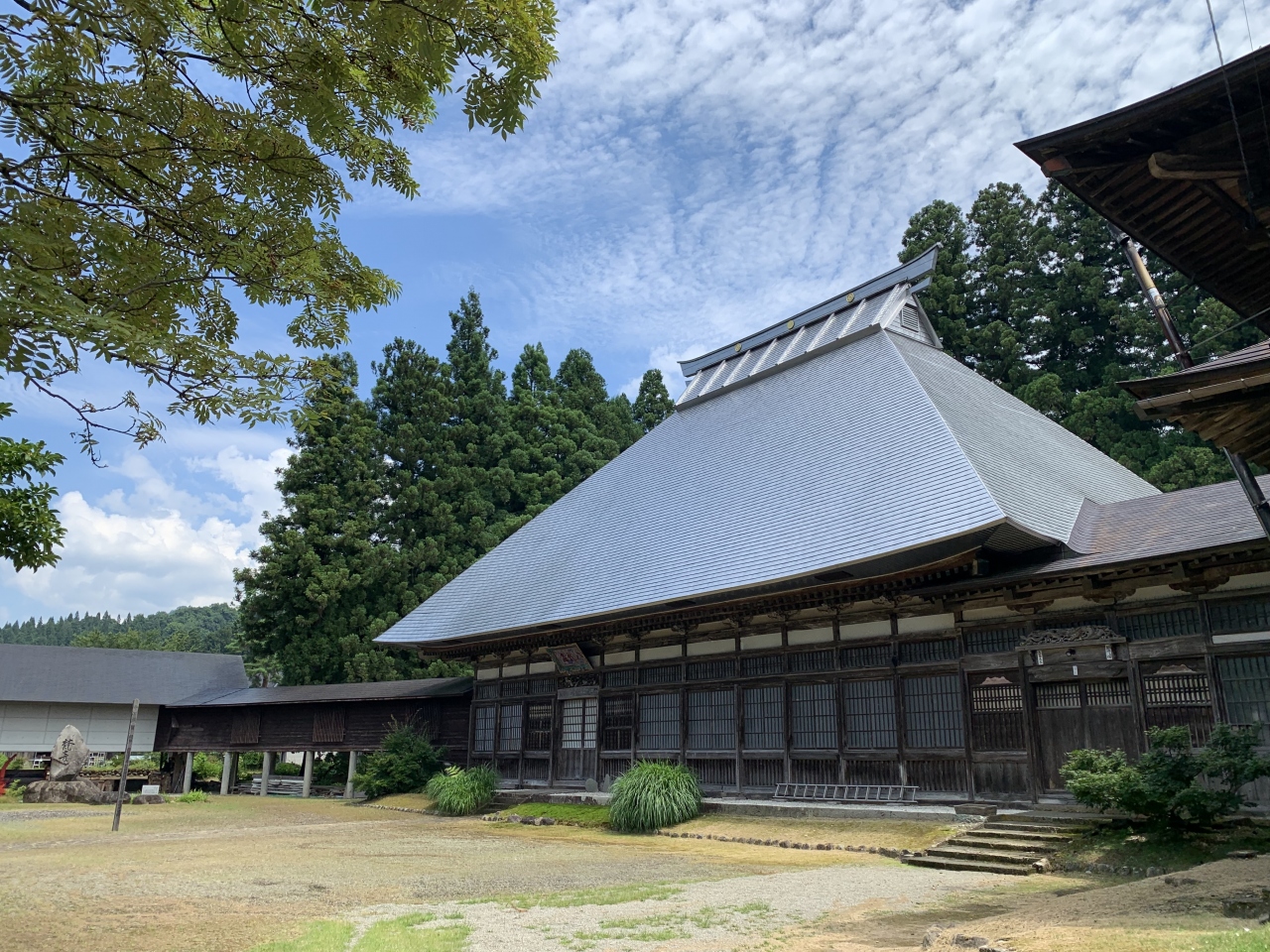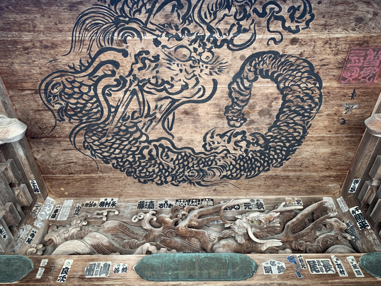 南魚沼氏市の北部、越後浦佐の「普光寺(ふこうじ)」へ。「雪国おくにじまん会館」の横に無料駐車場があります。参道を歩いて「山門(仁王門)」へ、天保2年(1831年)に地元の豪商の関市四郎氏が棟梁に六日町の宮大工内藤藤蔵氏を迎え造営したとのこと。山門の楼下には「双龍図板絵」、江戸時代後期の谷文晁という画家によるもので、消えかかっていたものが近年復元されたもの。「毘沙門堂(びしゃもんどう)」は、大同2年(807年)に坂上田村麻呂が東国平定の際に建立したとされています。坂上田村麻呂は、”毘沙門天の化身”と言われたほどの秀でた武将だったらしい。なので、武将だった上杉謙信や景勝も崇めて訪れたのだとか。現在の建物は、火災による消失のため昭和12年(1937年)に再建されたものだそうです。回廊の突き当りには「不動明王」と「うがい鉢」、不動明王石像は明治の初め頃のものとのこと。ここでは真冬の3/3に「裸押し合い祭」なるものが開催されるそうです。次回来るとするならその頃かな。