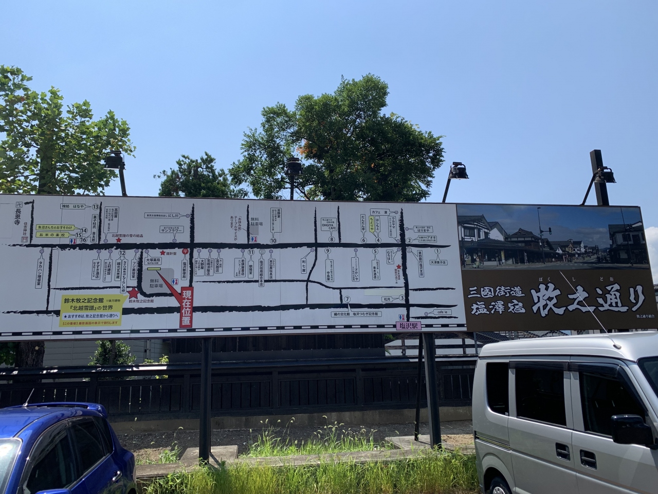 三国街道の宿場町として栄えた塩沢宿があった通りは「牧之(ぼくし)通り」と名付けられています。”雁木(がんぎ)”と呼ばれる雪国ならではのアーケード通りがあり風情があります。蔵を移築・リノベートしたカフェで休憩しました。ノスタルジックな街並みが再現されていて、散策や食事、休憩におススメです。