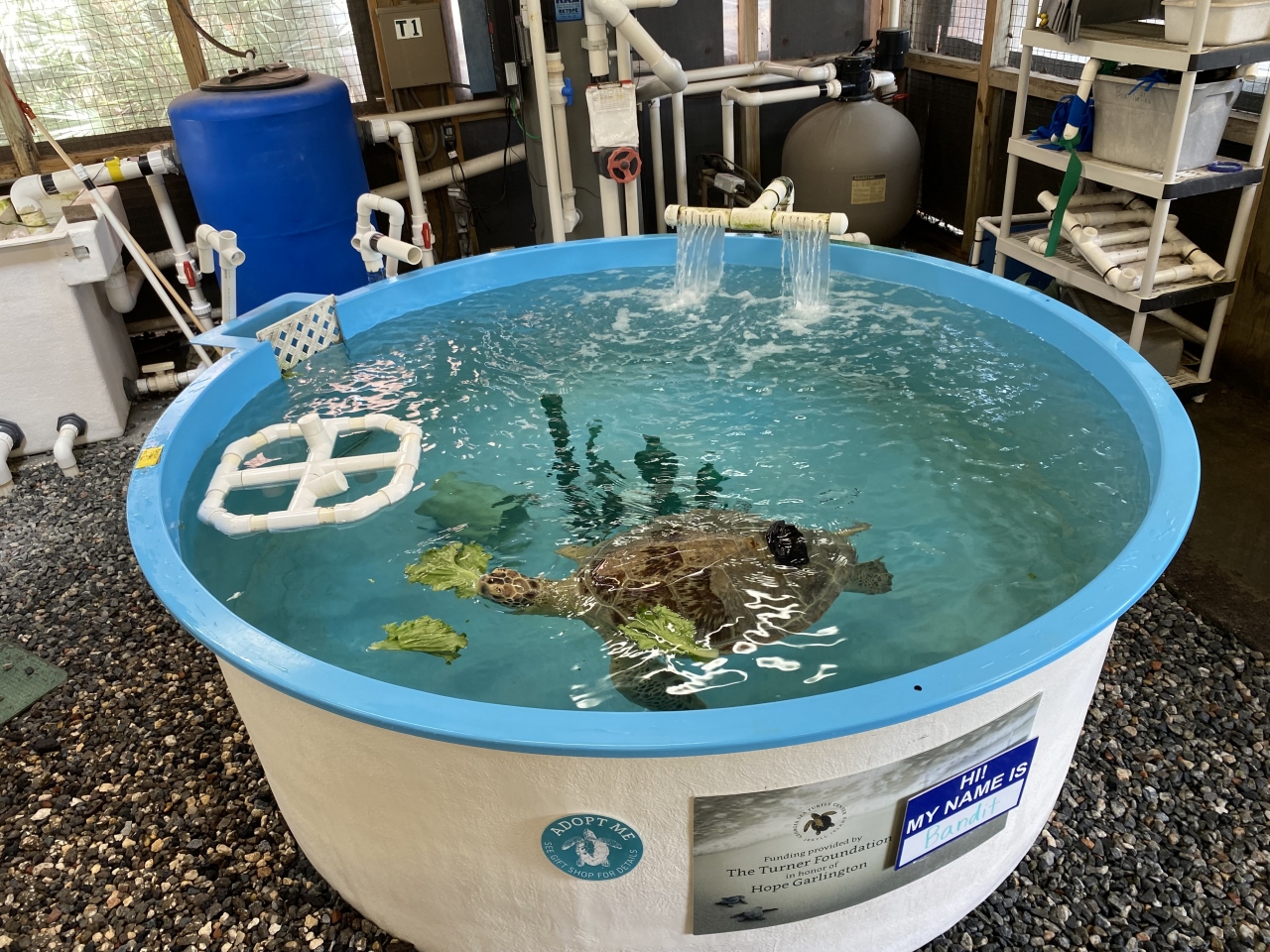 ジェキル島の歴史建造物地区内にあります。ジョージア州で唯一のウミガメに関する学習およびリハビリ施設です。ウミガメの保護施設にはいくつかのウミガメの水槽があり、スタッフによる施設の説明の後、保護されたウミガメの紹介がありました。そして食事タイム、レタスが水槽に入れられて、ウミガメがそれにがっつきます。産まれて間もない赤ちゃんウミガメも見せてくれました。アオウミガメなど種によっては絶滅危惧種に指定されており、このセンターでは保護に取り組んでいます。水族館とは別の視点でウミガメを見ることができる貴重な施設です。