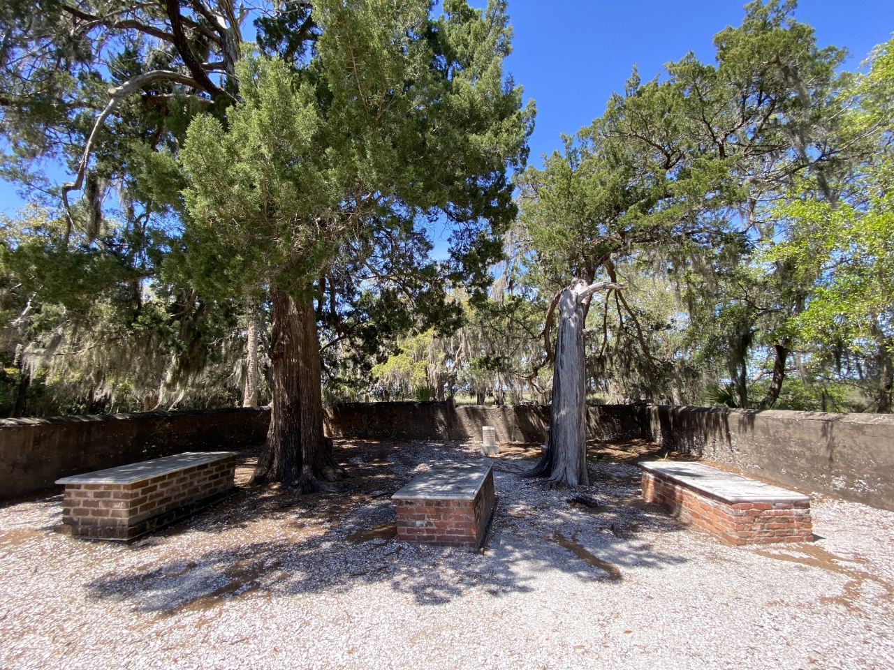 もう少しで島の北端というところの道路沿いに「ホートン・ハウス(Horton House)」があります。1743年にジェームズ・オグルソープ将軍の最高軍事補佐官だった、ウィリアム・ホートン少佐によって建てられた家とのこと。ホートン・ハウスと道を挟んで向かいにあるのが「デュビニョン墓地」。先述のこの島のクラブ創始者だったデュビニョンの家系の墓のようです。ヨーロッパ人が遠い地のアメリカに入植し、軍人が祖国の植民地争いのために生きた痕跡がぽつんと残る、少し哀愁漂う場所です。