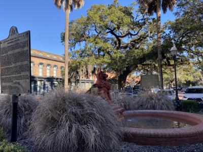 チッペワ・スクエアに面して建つ「サヴァンナ・シアター」。1818年オープンというアメリカでも最古級の劇場の一つなのだそう。といっても、ハリケーンや火災などでの損壊を経て現在の建物は1948年のものとのことです。外観のみ見に行ったのですが、古い建築というわけではなく普通の鉄筋コンクリートの建物で、劇を見るために行くなら別ですがわざわざ見に行くほどのものでは無いですね。