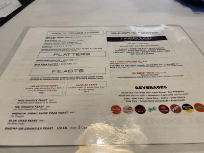ホテルからそれほど距離が無いところにあったブランズウィックのレストランでディナーしました。「ミスター・シャックズ・シーフード(Mr. Shuck's Seafood)」、海鮮料理レストランです。シャックというのは掘立小屋、シーフード料理店の名前でよく使われる言葉ですね。予約をしてませんでしたので、15分ほど待ちました。人気店らしく、店内は大賑わい。そして...ど~ん!出ました!「ジ・ウルティメイト・フィースト(The Ultimate Feast)」...「究極の饗宴」と名付けられたシーフード盛です。価格はMKT…つまり時価、この時は79.95ドル(税抜き)でした。ブルークラブ(ワタリガニの一種)、ジャンボ・スノークラブ(ズワイガニ)、エビなどをケイジャン・スパイスで調理したもの。日本の醤油味の海鮮とはまた別の美味さ!アメリカ南部の沿岸シーフードはコレなのです!