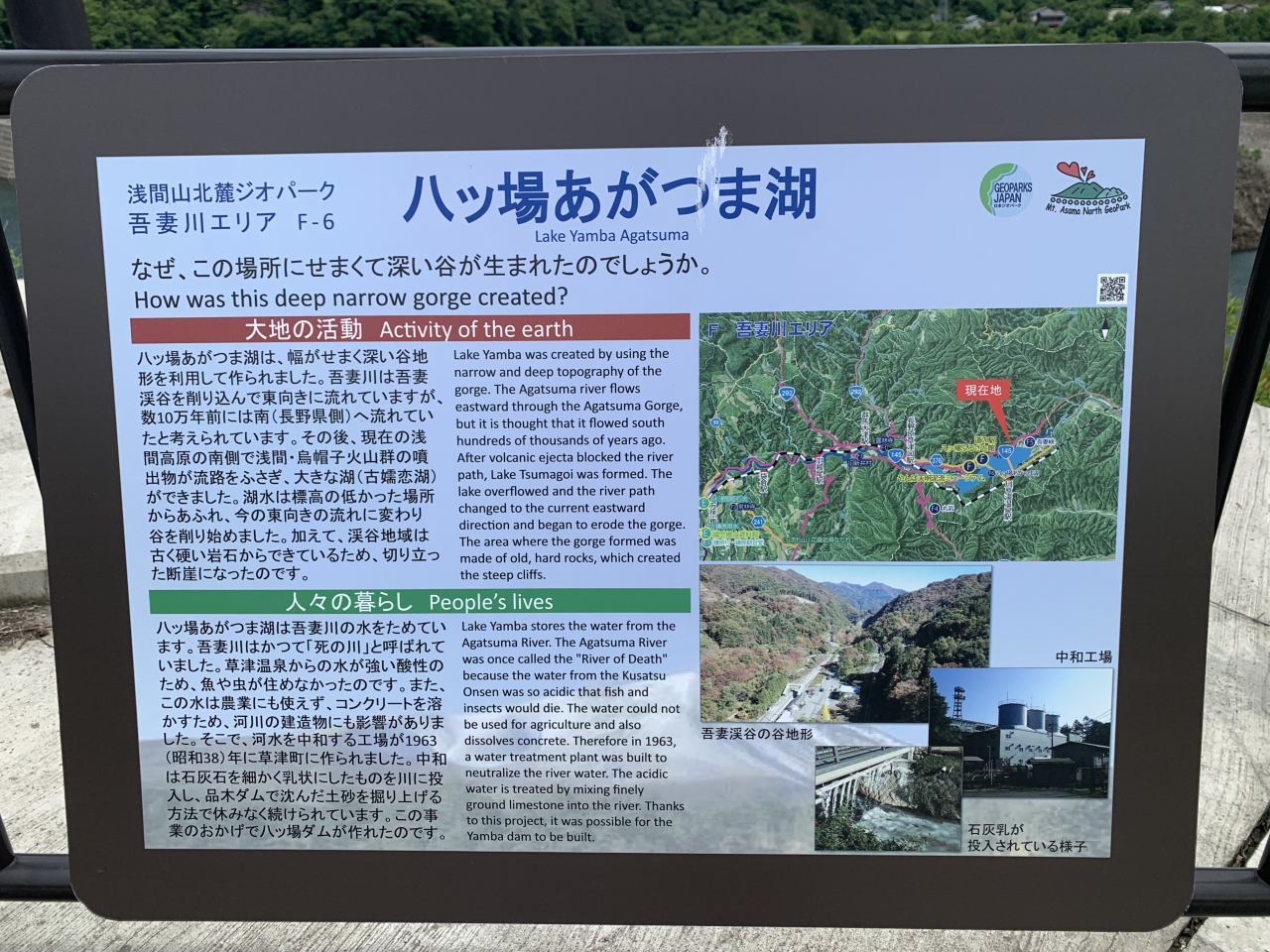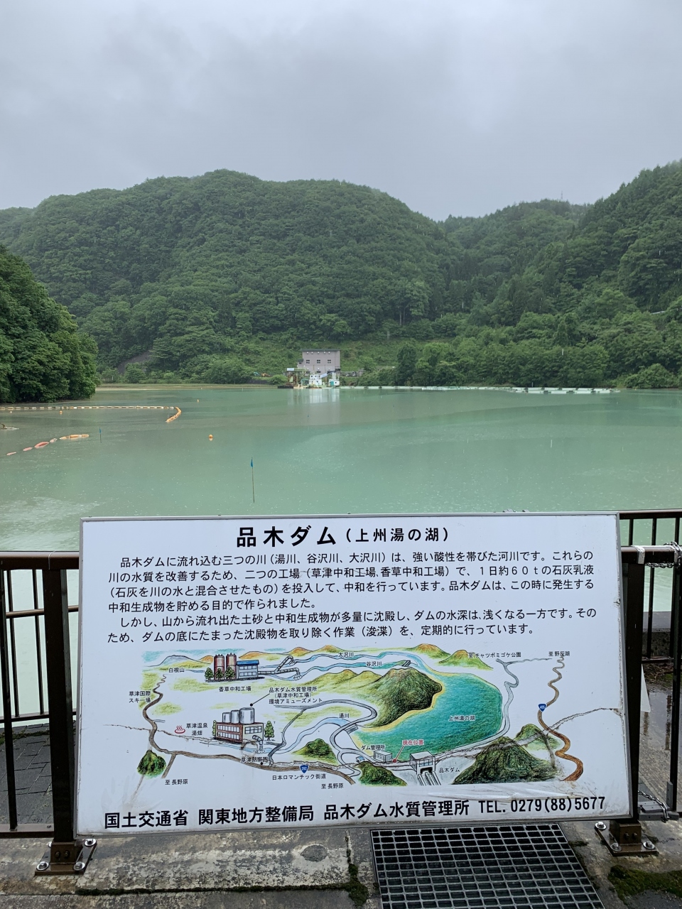 道の駅六合から国道を外れて「品木ダム」とその人造湖である「上州湯の湖」へ。水力発電も行ってます。このダムは、草津温泉の強酸性の水が流れる吾妻川の水質改善、酸性の中和を最大の目的とするダムだそうです。あまり聞いたことが無い…珍しいダムを見ることができました。