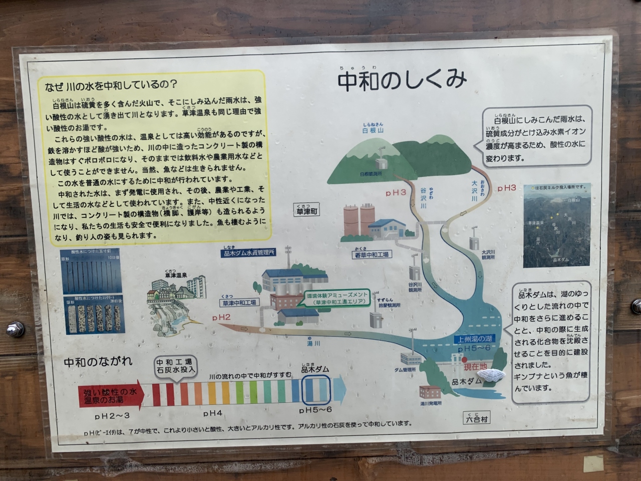 • 草津温泉の強酸性の水が流れる吾妻川の酸性を中和する珍しいダム