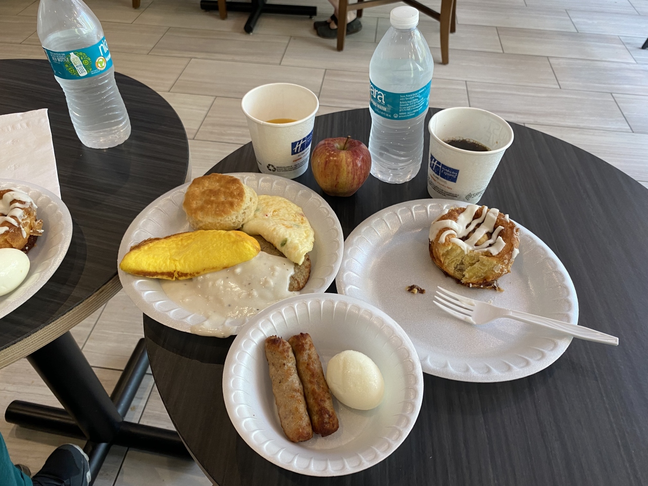ゴールデンアイルズの島のホテルは料金が高いのでブランズウィックの郊外にしました。島までは距離が幾らかありますが、クルマで20~30分ですので大して遠くはありません。客室はこのクラスなら普通でしたが、バスルームがキレイでバスタブとの仕切りがガラス戸になっていて水漏れしにくくてよかったです。朝食はホリディ・インの定番メニュー、おなじみのパンケーキマシンがありホットミールはソーセージとオムレツでした。高速道路が近いとはいえもう少し安いといいのですが。