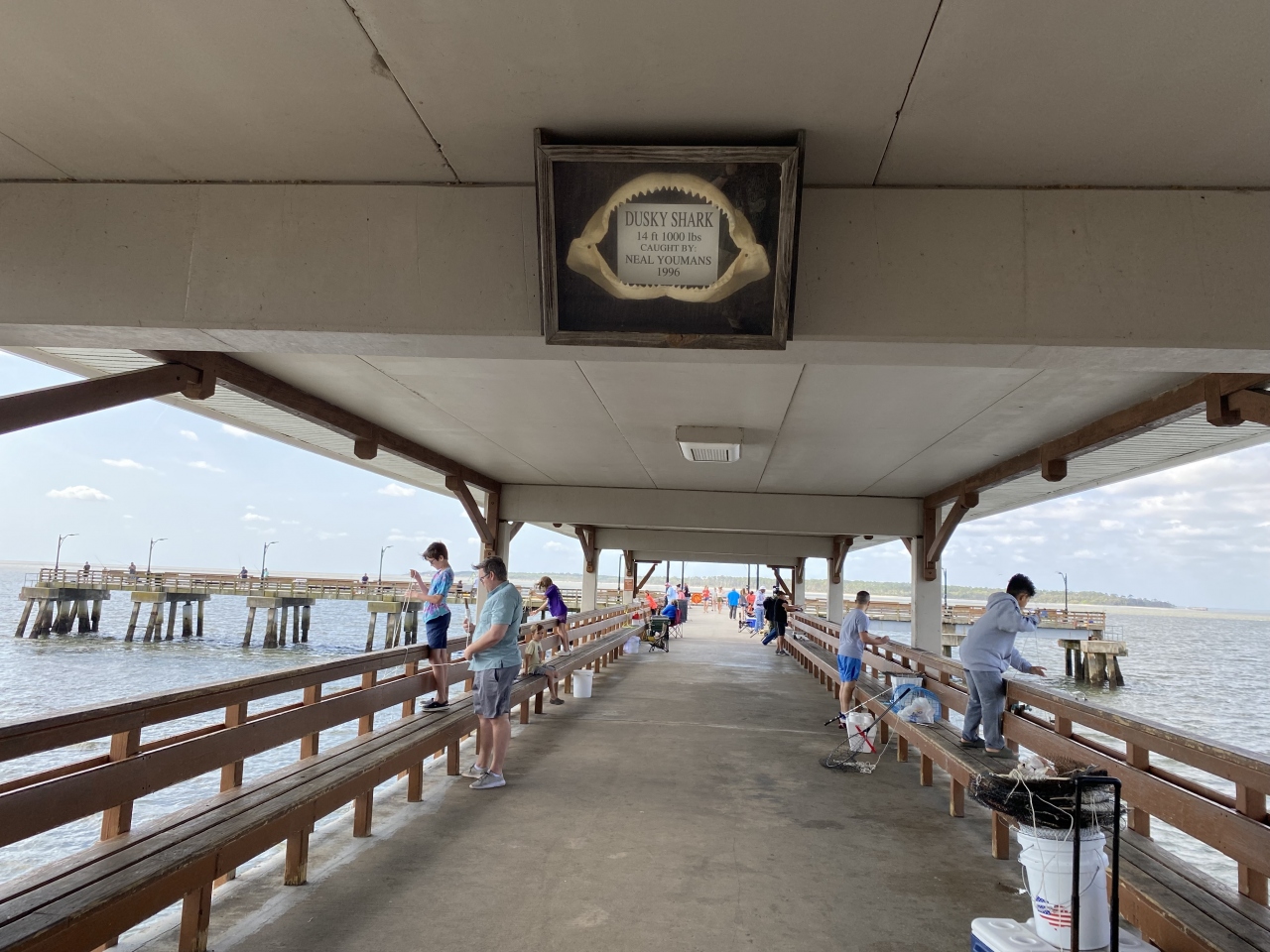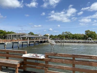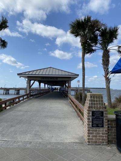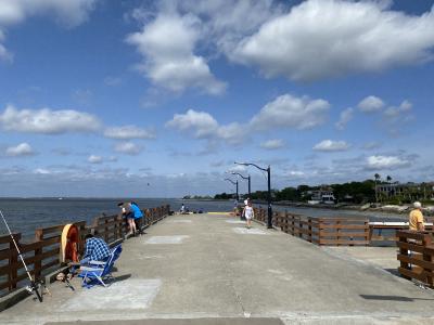 海に突き出しているのは桟橋「セント・シモンズ・アイランド・ピア」。桟橋を渡ってみるとフィッシングしてる人多し。仕掛けのカゴに鶏肉とか入れて海に下ろしてます。何を狙ってるんでしょう?蟹(ダンジネスクラブ)とか?釣り客のおこぼれを狙うサギがいたり。大西洋を見渡せる気持ちの良い場所です。