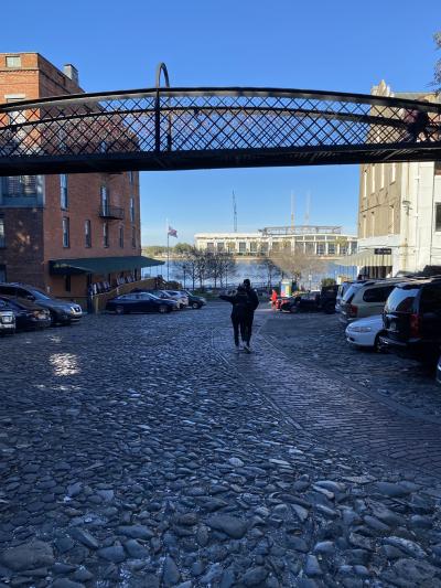 ウォーターフロント地区の周辺に東西に伸びる小路が「ファクターズ・ウォーク」です。アメリカ南部のプランテーションによって栄えた綿花産業、サヴァンナ港にはその綿花の仲介人や卸問屋が軒を連ねていたそうです。この小路の古い倉庫や問屋は当時の繁栄の名残を感じることができます。小路の上に架かる橋は「ラブ・ロック・ブリッジ」、見えにくいですが橋の柵には恋人たちの鍵がたくさん掛っていました。