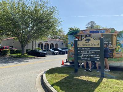 セントシモンズ島の南端、「ネプチューンパーク」の近辺、海の近くでいちばん賑わっている感じの場所にあります。ここで観光マップをゲットしましたが、スタッフが島の見どころも教えてくれました。このセンターにクルマを駐めて、まずは徒歩で周辺を周るのが良いでしょう。(クルマ移動だと駐める場所に苦労しますので)