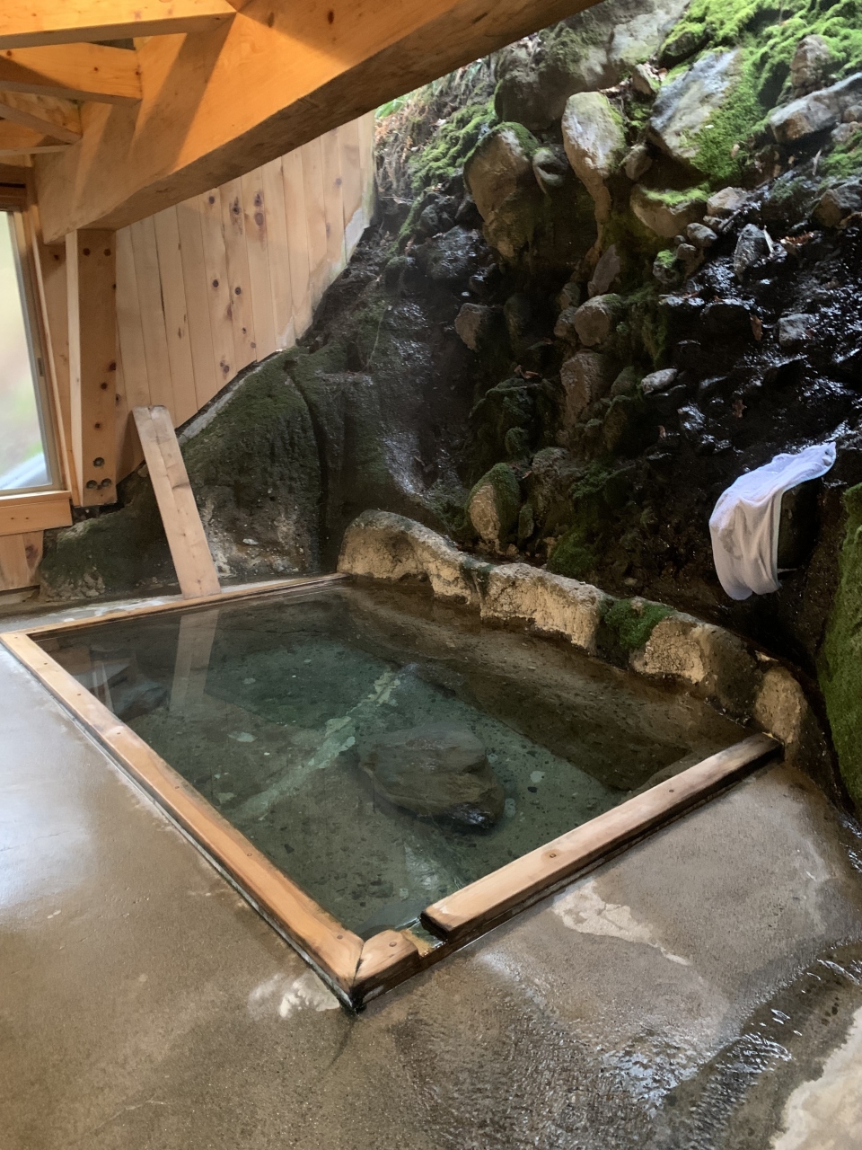 足元から源泉が湧き出る半露天の自噴巌風呂が貸切で入れたのは最高