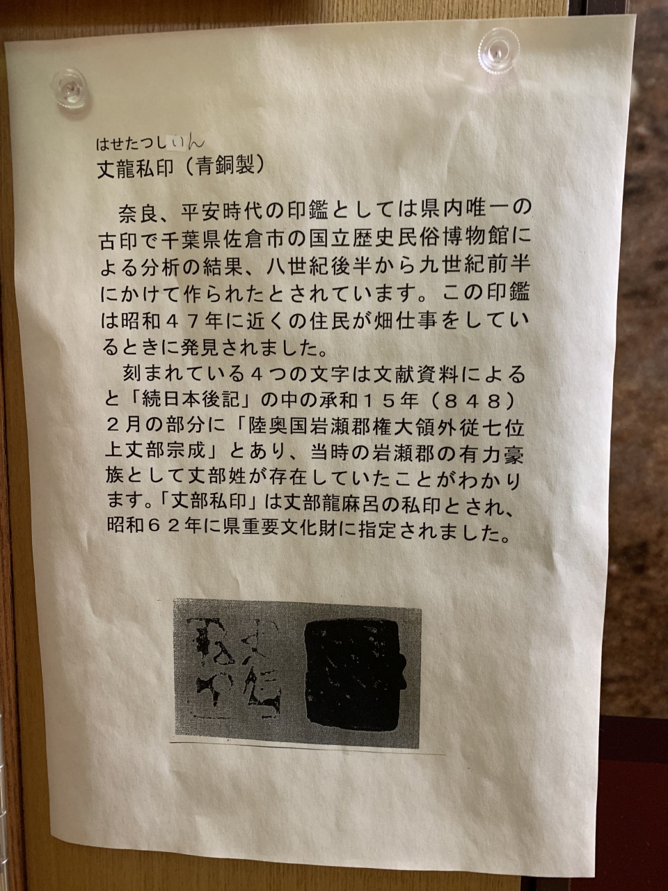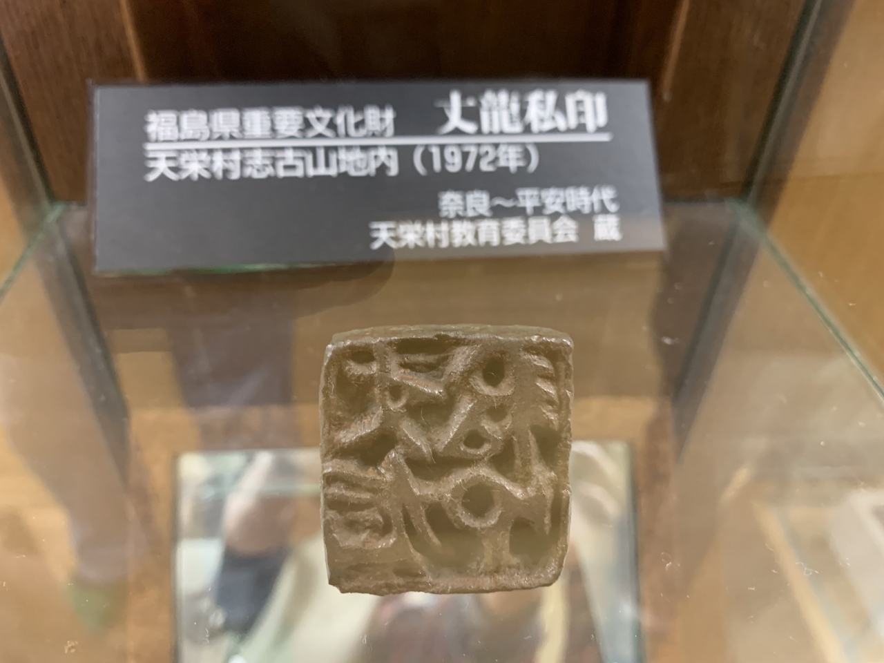道の駅 天栄から少し丘に登ったところにあります。天栄村の歴史と文化を紹介する施設です(入場は無料)。旧石器時代の発掘物、奈良・平安時代の古印、鎌倉時代から安土桃山時代に作られたとされる供養塔、江戸時代に栄えた白河街道の「牧之内宿」など、会津と中通りを結ぶ古くからの要衝だった天栄の歴史を学べました。