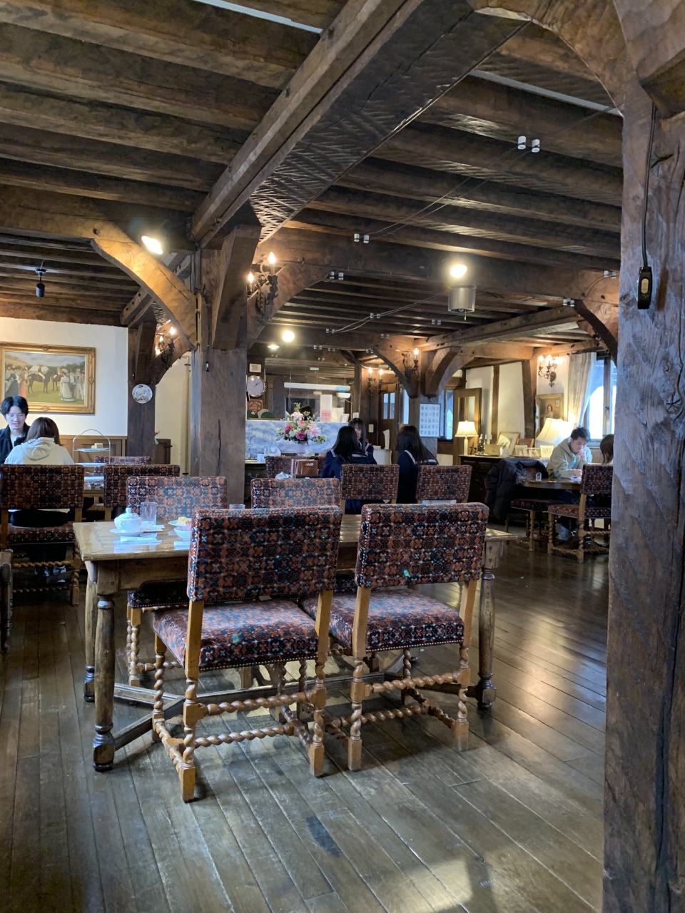 羽鳥湖の西側の丘、3月にはまだ残雪。その丘の上に「ブリティッシュ・ヒルズ」があります。ブリティッシュ・ヒルズは、とある外語学校が設立した、”パスポートのいらない英国”を謳う中世の英国を再現した文化施設です。英国の文化・語学研修に主眼を置くとみられますが、ホテルやティールームやパブの利用もウエルカムな施設のようです。マナーハウスと周辺の建物群もあわせて、建築様式からインテリアまでかなり本格的でした。いくつかあるゲストハウスは、12~18世紀にかけて建てられた英国の民家を再現したものらしい。このブリティッシュ・ヒルズを訪れた最大の目的はクラフトハウスの「アスコット・ティールーム」で、本格的なアフタヌーン・ティーのセットをいただきました。なお、事前の調査によると、ブリティッシュ・ヒルズは英国なので英語しか使えないという情報がありましたが、全然そんなことはありませんでした。むしろ英語は全く使わず肩透かし。曜日や来訪目的などによるのかもしれませんが。