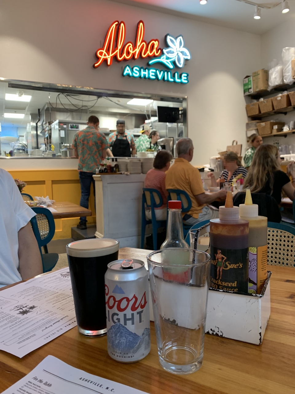 アシュビルのダウンタウン、サウス・スロープという坂道にあるクラフトビールの醸造所です。アシュビルは、アメリカで最も一人あたりの醸造所が多い都市で、アシュビルだけでも100種を超えるクラフトビールがあるそうです。HI-WIREはその中でも人気の店、たくさんのお客さんで賑っていました。私たちは「ハイ・ワイヤ・ラガー(HI-WIRE LAGER)」と「イージー・ピッチ・IPA(EASY PITCH IPA)」にしました。カウンターへは次から次にお客さん。この店、雰囲気からかご婦人が多めでした。ビールが美味いのはもちろん、店内の醸造設備なんかも少し眺めてみたり。賑やかな楽しいひと時でした。