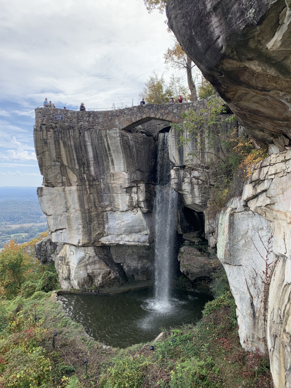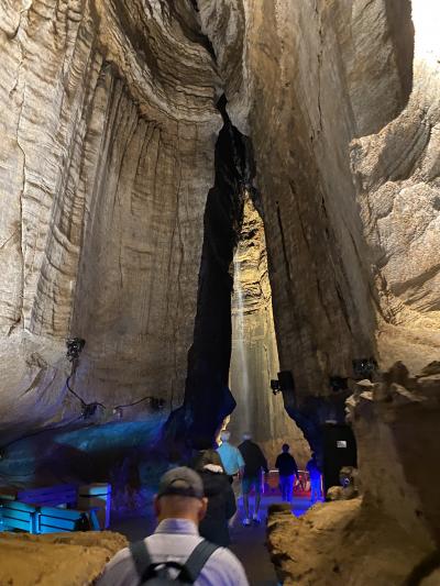 「ルックアウト・マウンテン」というのはこの辺りにある山です。その中にある「ルビー・フォール」に到着。ビジターセンターから洞窟を歩いてルビー・フォールまで行きます。所要時間は1時間から1時間20分。基本の「ケイブ・ウォーク・トゥー・ルビー・フォールズ(Cave Walk to Ruby Falls)」を事前にWeb予約しておきました。ここでチケットをゲット。ちなみに大人ひとり24.95ドルです。洞窟の通路は狭いので一度に多くの人は入れません。ですので、時間が決められています。時間を有効に使うなら予約がベターです。まずはエレベーターで地下へ。ガイドさんに従い洞窟探検へGO!(ガイド付きのツアーしかないので、自由に行くことはできません) 鍾乳洞を歩いて探索した先に「ルビー・フォール」がお目見え、ルックアウト・マウンテンの地下洞窟内にある落差44mの珍しい滝です。詳しくは旅行記にて。