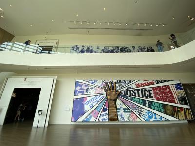 市街中心部、アラバマ州議事堂から徒歩にて「公民権メモリアルセンター」へ、奥の大きな建物は南部貧困法律センターです。建物の手前には、キング牧師の”正義が水のように、正しさが力強い小川のよう流れるまで...”という言葉が刻まれた花崗岩。このメモリアルセンターには、1954~68年の間の公民権闘争で亡くなった人々の名前が刻まれています。館内はガイドツアーになります。先述の公民権闘争に関するイントロダクションが、ご覧の会場でプロジェクションマッピングにて紹介されました。その後、映像ホールにて公民権運動の紹介ビデオが流され、簡単な質疑応答セッション。どこかの団体が熱心に応答していました。ここじゃないと見れない、という内容でも無いかな...ガイドツアー待ちとセッションが面倒でなければ。