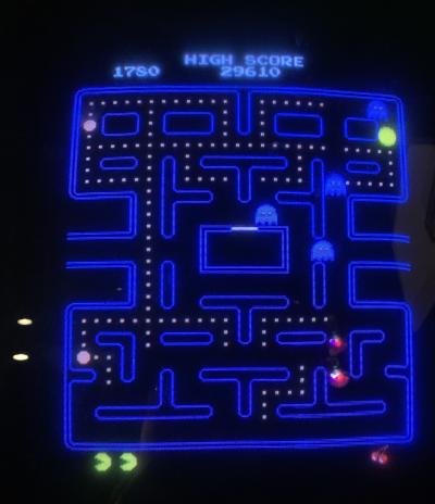 ダウンタウンで見つけたゲームセンター、入場はひとり10ドル。ピンボールもアーケードゲームもプレーし放題です。テレビゲームの登場以前はゲーセンの花だったピンボール、そしてアーケードゲームはナムコの「パックマン」、データイーストの「ハンバーガー」、ナムコの「ゼビウス」(残念ながらフリーズしてました)など、懐かしいゲームを当時のゲーセン感覚で楽しめました。家庭用ゲーム機が普及した昨今ですが、アメリカではこのような懐かしいアーケードゲームとピンボールがあるゲーセンがブームらしく、全米各地にあるようです。小さなバーも備えており(飲み物は別料金)、バーとアーケードの造語で「バーケード」と呼ばれるそうです。