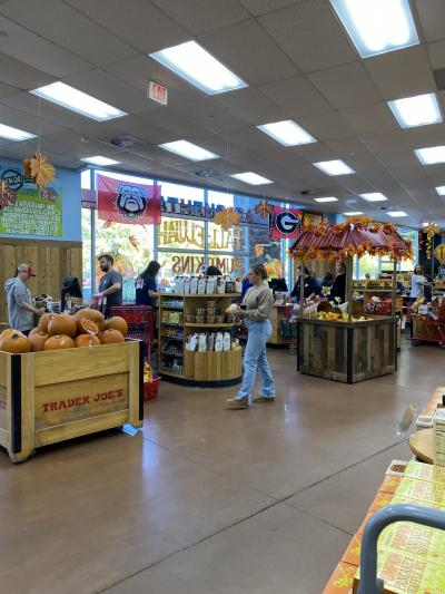 アセンズ郊外のアメリカ在住日本人にも人気のスーパーマーケット、「トレーダー・ジョーズ」に立ち寄り。日本人には「トレジョ」と呼ばれ、グルメ系スーパーとして人気です。私たちは、お手頃で美味しいスペイン産の赤ワイン(テンプラニーリョ種)とドイツ産の白ワイン(リースリング種)、そしてケソ・マンチェゴ(マンチェゴチーズ)などを求めて定期的にトレジョを訪れてます。日本で言うとカルディを大きくしたようなイメージですが、物価が高いアメリカでコスパに優れたモノが見つかる超オススメのスーパーです。