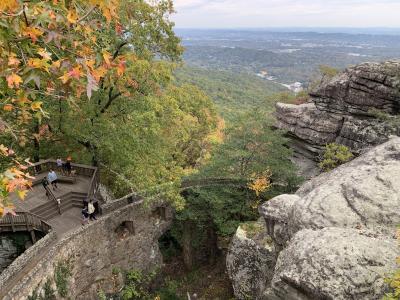 チケットは事前に公式Webサイトで予約しておきました。時間制です。ロック・シティーはジョージア州で東部時間なので、中部時間のテネシー州より1時間進んでます。テネシー州側から行く場合は時間に注意が必要です。ロック・シティ・ガーデンズは、1932年開業の歴史ある公園です。地元の住民であるガーネット&フリーダ・カーターというお金持ちの夫婦が、ロックアウト・マウンテンの一部を買い取り、岩の地形を生かしたトレイルコースとおとぎ話のテーマパークを造りました。これが中々凄いんです。自然の地形を生かした立体的なコース。子供はこういうの大好きですね。ロックが織りなす見どころを巧みにルーティングしていて、大人でも少しワクワクします。「シー・セブン・ステイツ」という展望エリア、ここから7つの州を見渡せます。