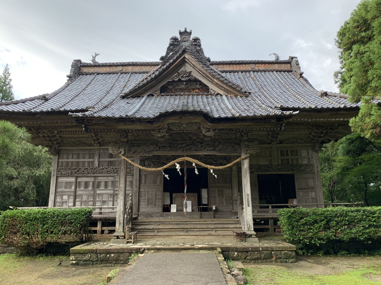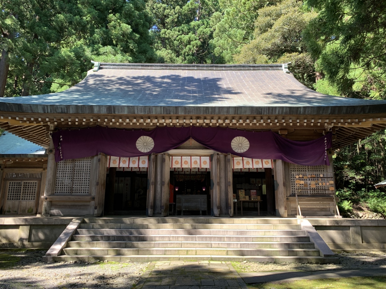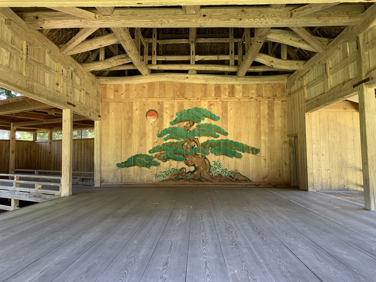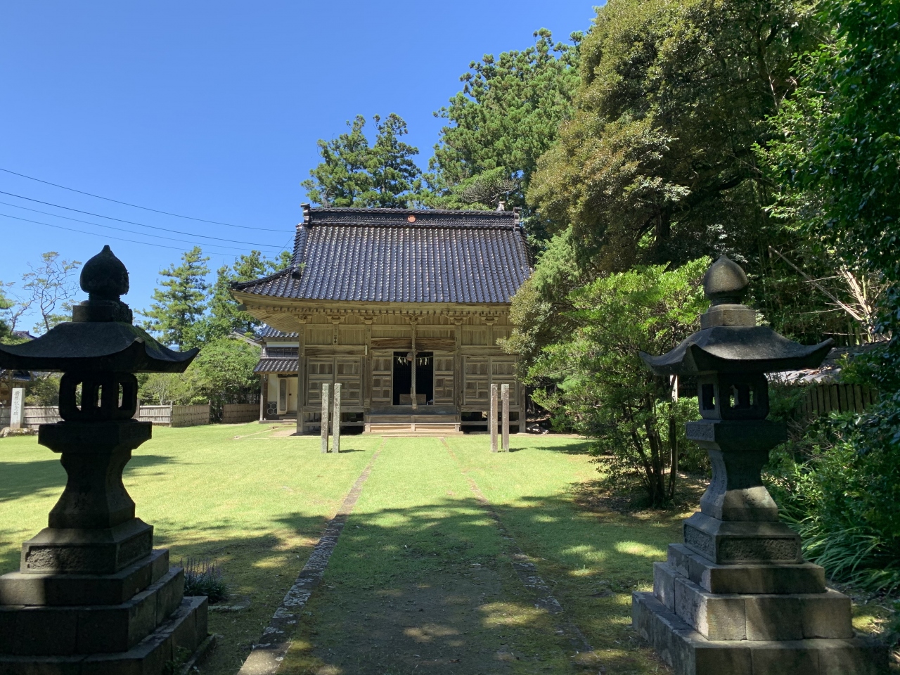 「潟上の天王さん」の愛称で親しまれているそうです。奈良~平安時代の延暦11年(792年)、出雲大社より大国主命などを勧請(神仏の分身・分霊を他の地に移してまつること)して建てられたそうです。再建された拝殿は精細な彫刻が見事、鯉の泳ぐ姿や順徳上皇の物語絵などの彫刻らしい。明治34年(1901年)に再建されたという能舞台は県有形民俗文化財とのこと。「国仲四所の御能場」のうちの一つなのだそう。佐渡は室町時代に申楽(能楽の祖形)師だった世阿弥が流された島ですが、能文化は江戸時代の初代佐渡奉行の大久保長安がもたらしたとされています。室町期の能面「翁面」と「三番叟面」(県有形文化財)が社の宝物となっているということから、古くから能が演じられていたことがうかがえますね。
