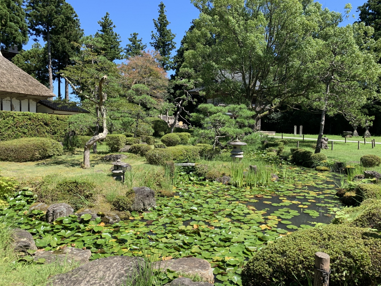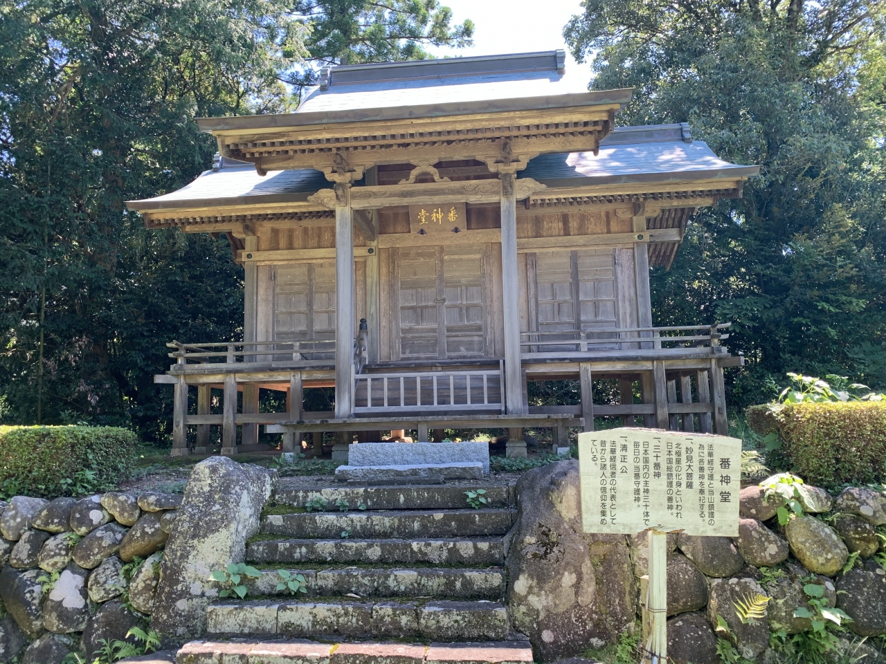 佐渡へ流された日蓮に仕えた遠藤為盛(阿佛房日得上人)が、建治4年(1278年)に開いた寺が始まりと伝わっているそうです。説明板によると16世紀前半ごろに築城された本間氏の居城「雑太城(さわだじょう)」の跡地がこの妙宣寺になったらしく、日光東照宮を模したとされる「五重塔」、「山門」、「番神堂」、「祖師堂」そして「本堂」と「庫裡」…など現在の建物は19世紀以降のものらしい。本堂前の庭園など、田舎の寺にありがちな鬱蒼とした森ではなく、城跡だったからか手入れされた開けた空間に端正な建物が佇む個性的な寺でした。