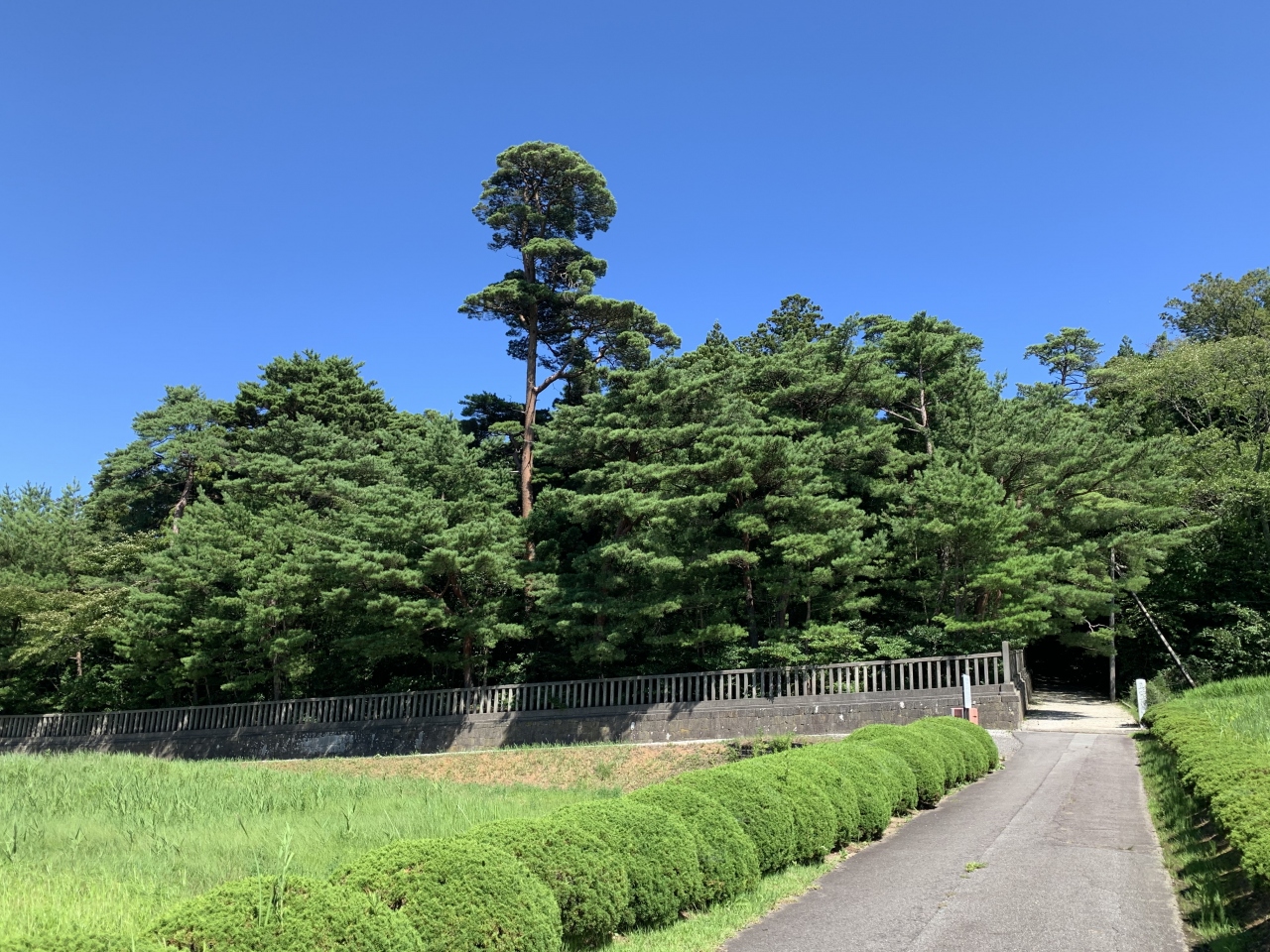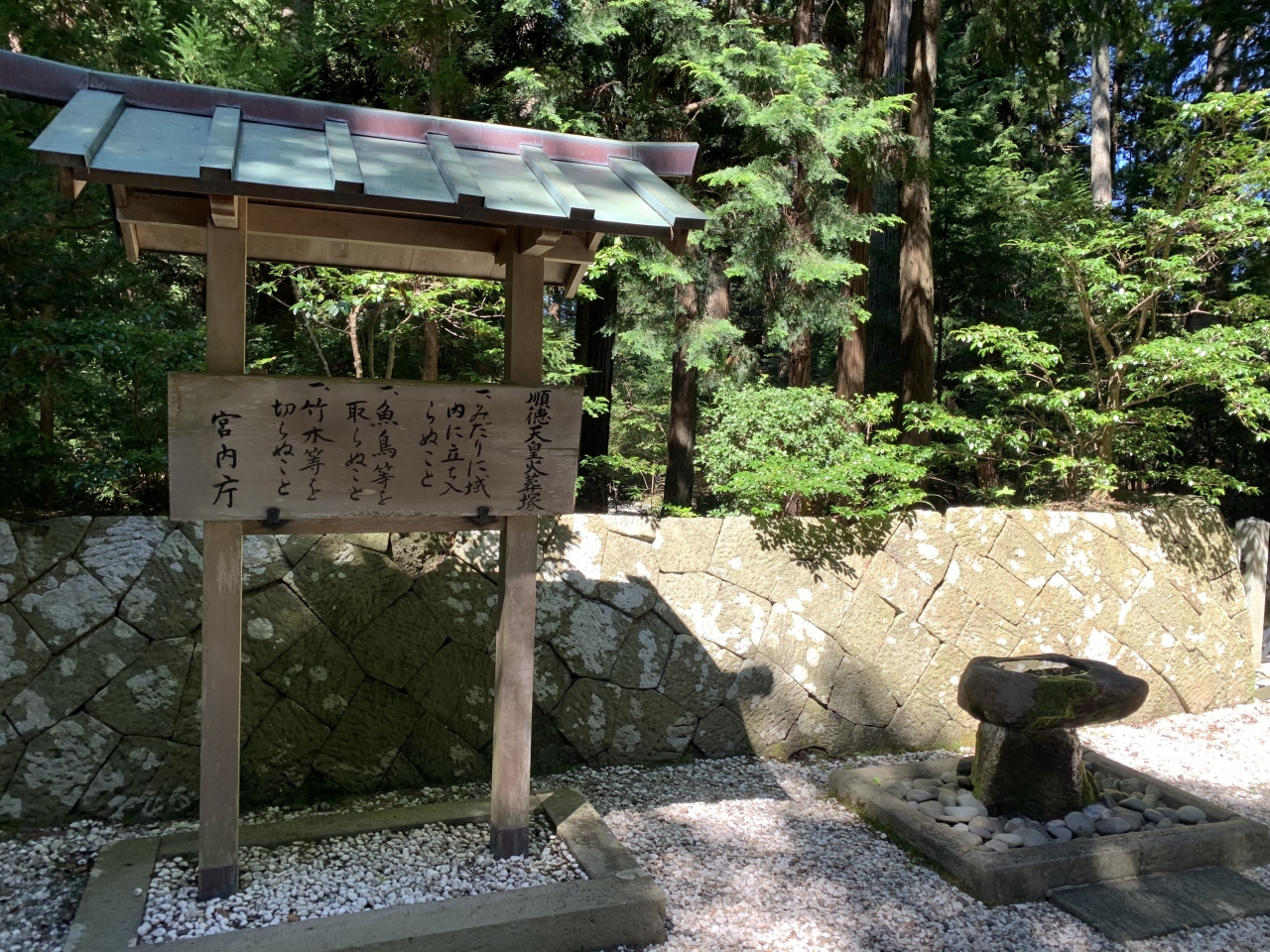 「真野御陵」は正式には「順徳天皇御火葬塚」なのだそうです。鎌倉時代の”承久の乱”にて、首謀者の後鳥羽上皇は隠岐へ、その第三皇子の順徳上皇はここ佐渡へ島流しとなりました。順徳上皇は仁治3年(1242年)46歳で崩御した翌日に火葬され、その跡に松と桜を植えたのがこの火葬塚ということです。この火葬塚は御陵と同格扱いで宮内庁の管理で、入ることはできません。奈良時代から既に流刑地として定番となっていた佐渡は、順徳上皇のほかにも、722年に皇室批判を行った万葉歌人、1271年に鎌倉幕府を批判した日蓮聖人、1434年に足利将軍を怒らせた能楽者の世阿弥など、色んな貴族や知識人が流されてきました。この塚はそんな痕跡の代表格といえそうです。