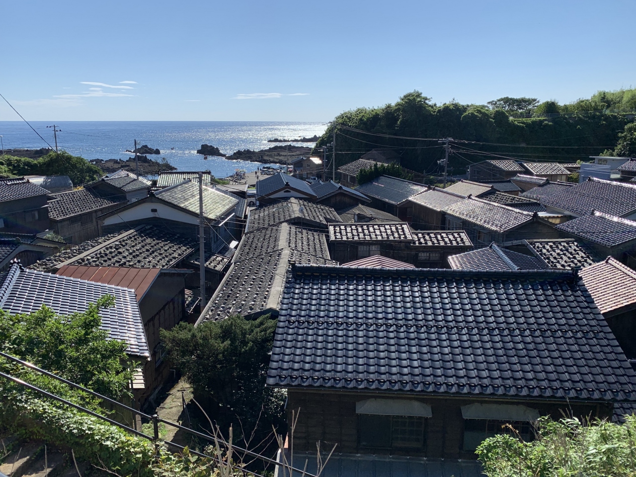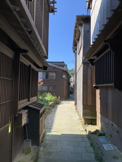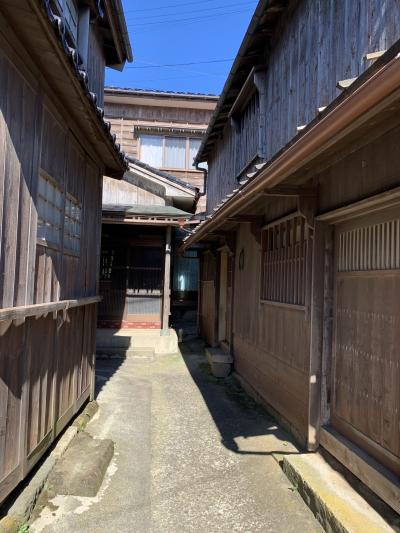 船大工の技術で築かれた宿根木の町並は、国の重要伝統的建造物群保存地区となっています。北前船の寄港地として栄えた小木海岸の集落として発展しました。町並みのモデル施設なんてのがありました。19世紀の船主の邸宅で、公開民家となっています。訪れた日は閉館でしたが。宿根木で有名な建物といえば「三角家」です。JR東日本のCMで吉永小百合さんと登場した家。この家は、弘化3年(1846年)の水害後に羽茂大橋付近から移築したもので、敷地に合わせて三角形に切り詰めて建てられたそうな。船大工の伝統技術が遺した情緒ある建物群で、北東の高台からの集落の眺望は必見です。
