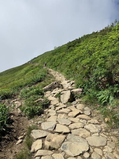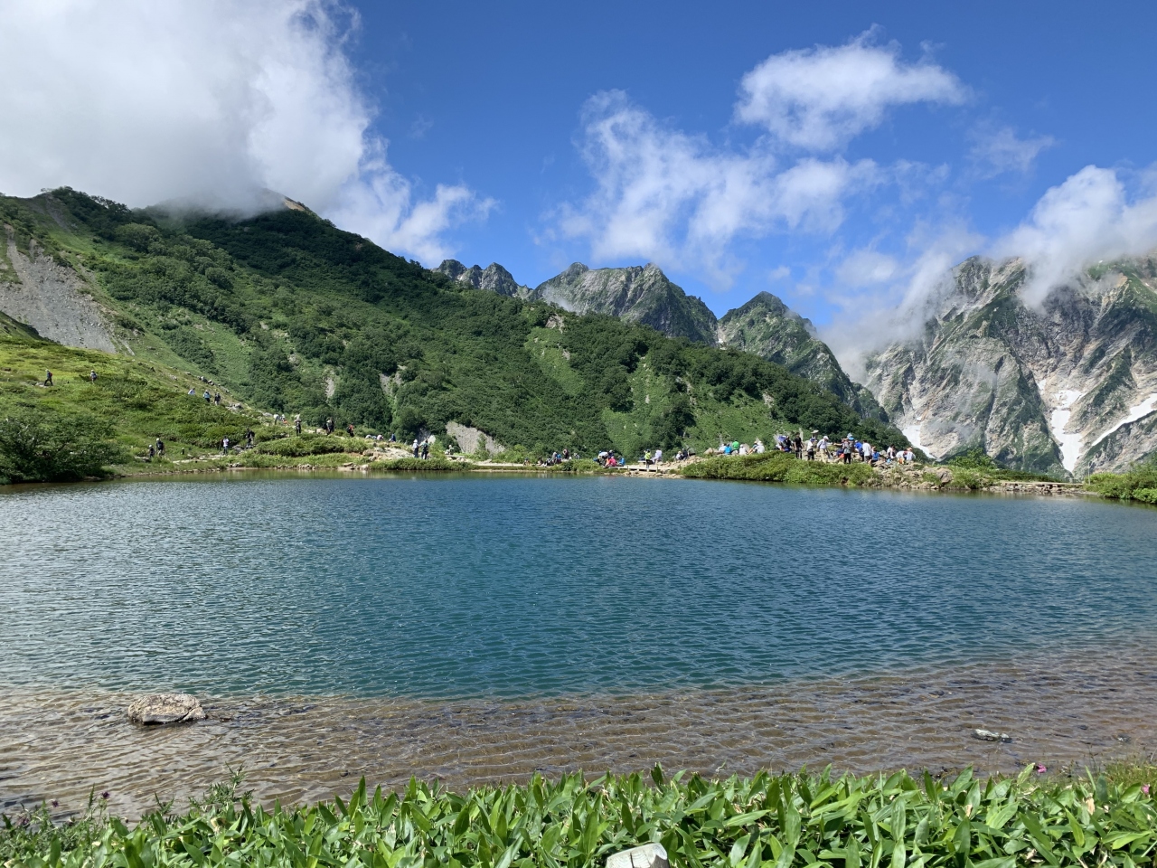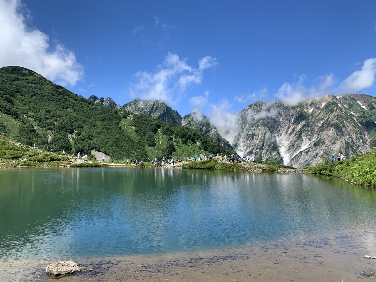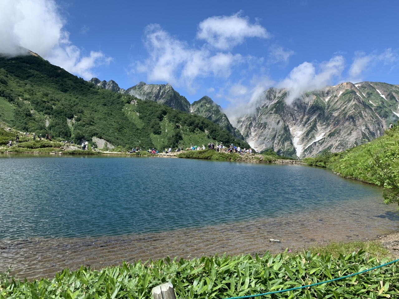 いい景色を見ながら下から40分ほどで第1ケルン、八方池山荘へ到達