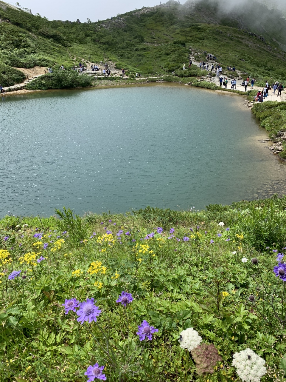八方アルペンラインの終点、八方池山荘から「八方尾根自然研究路」として整備されているルートを通り、八方池へトレッキングしました。ちょっと足場の悪いトレッキングコースを歩きます。さっそく、高山の湿地に生息する、食虫植物のモウセンゴケが登場。トレッキングルート沿いには色んな高山植物が咲いていました。途中、歩きやすい木道もあります。標高1,974mの「石神井ケルン」や標高2,035mの「八方ケルン」を経て八方池にたどり着きました。ゆっくり往復約3時間、距離も勾配もハイキングにちょうどよく、八方池の絶景までに気分が盛り上がるルートです。夏休みでしたので人は多かったですが。
