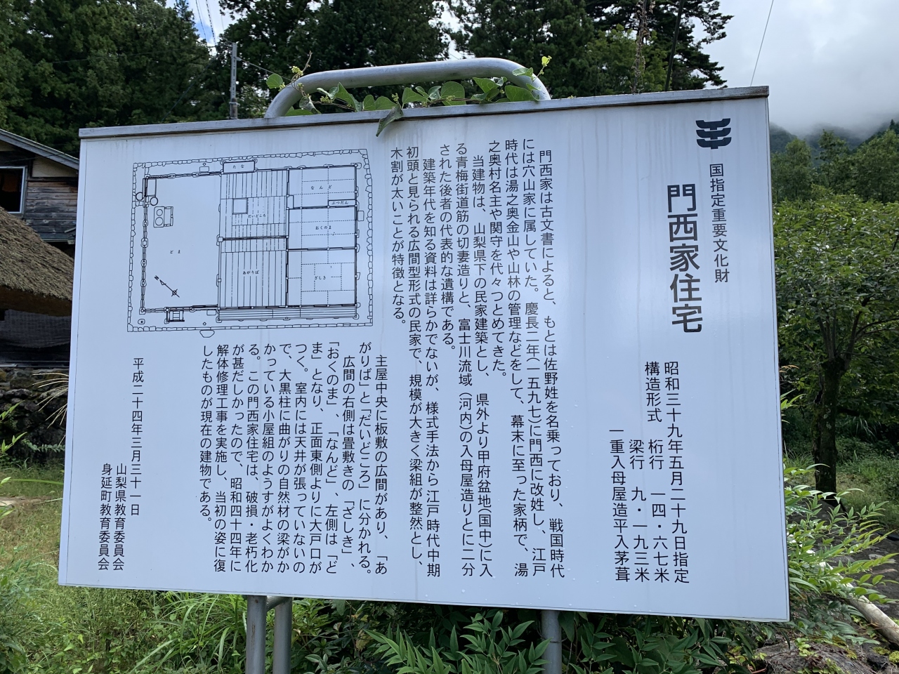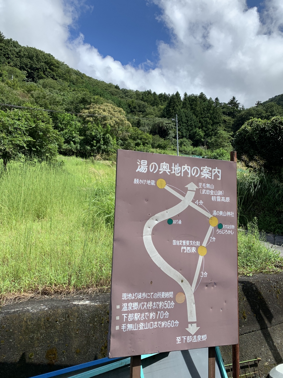 下部温泉街を抜け、湯之奥集落まで上ってみました。急斜面に石垣で造られた昔ながらの通りと家並み。かつては金山の町として栄え、代官屋敷や精錬所まであったそうです。集落の中に「門西家住宅」があります。武田一族の穴原氏に属した家柄だった門西家の、江戸時代中期の建築(昭和44年に大規模修理を実施)とされる邸宅で、国指定重要文化財。門西家は現在も集落の当主だそうです。さらに上ると、集落の守り神「湯之奥・山神社」がありました。かつては”湯之奥三千”ともいわれたそうですが、今では10戸ほどとなった集落を神社が昔と変わらず見守っており、ここも他の鉱山と同様に栄枯盛衰を感じられる場所です。