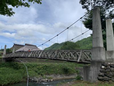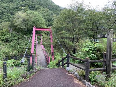 北アルプスを背景に吊り橋の写真を撮るのが定番…ですが曇ってました
