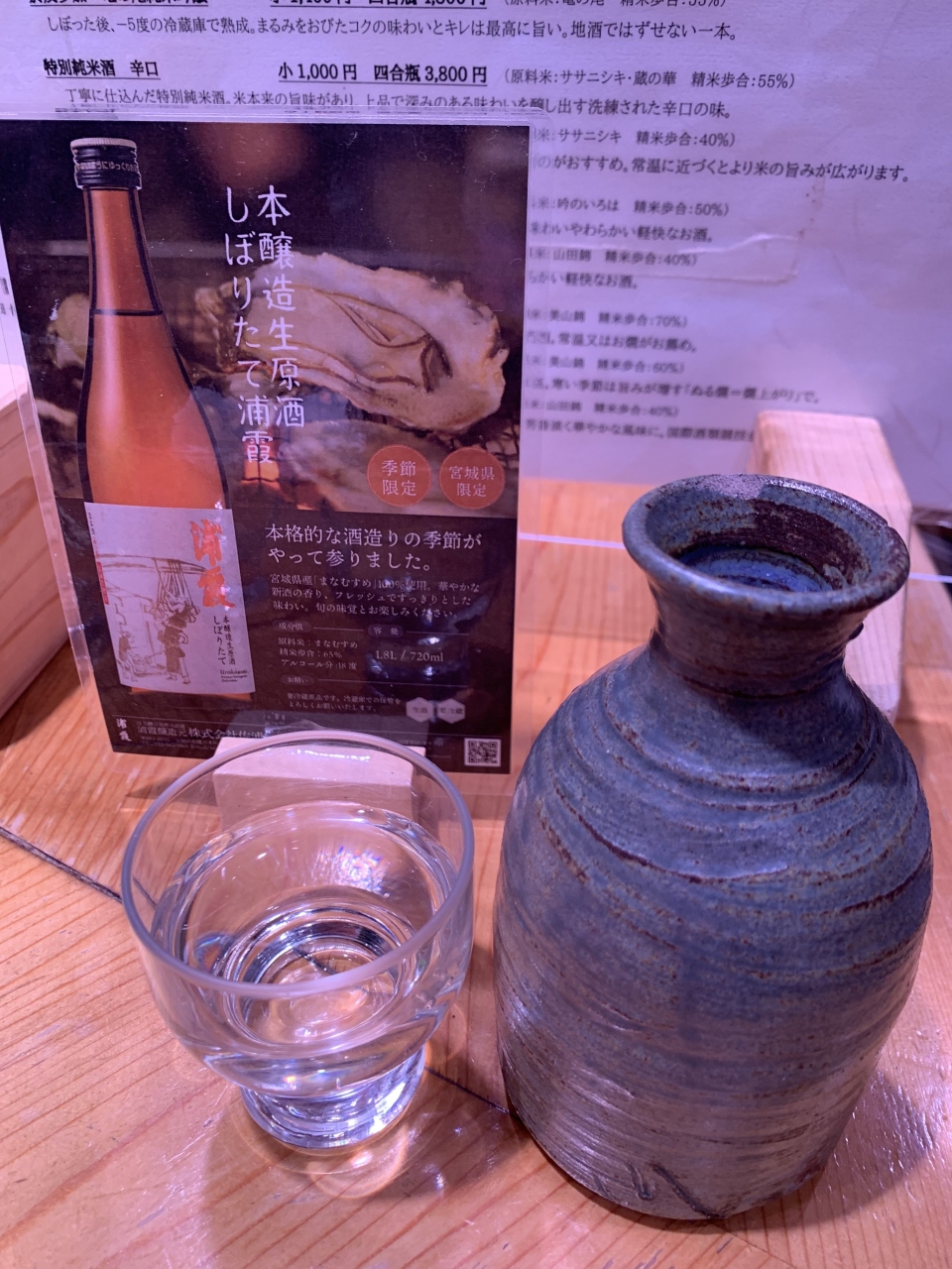 浦霞醸造元とありますが、正しくは「株式会社佐浦」です。江戸末期の享保9年(1724年)に鹽竈(しおがま)神社の御神酒酒屋として創業したそうです。事務所棟玄関には法蓮寺由来とされる向拝があり、エントランスには酒樽。店舗の方には新酒が出来ると飾られる杉玉が飾られ、商品棚の真ん中に置いてあったのは“季節限定”かつ“宮城県限定”の「本醸造生原酒しぼりたて浦霞」。前日に「すし哲 本店」でいただいたこの日本酒を買って帰りました。銘酒の醸造元で雰囲気も良いのでオススメです。