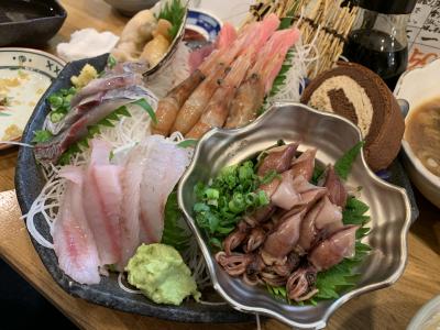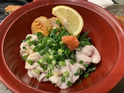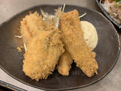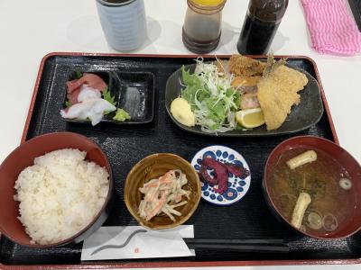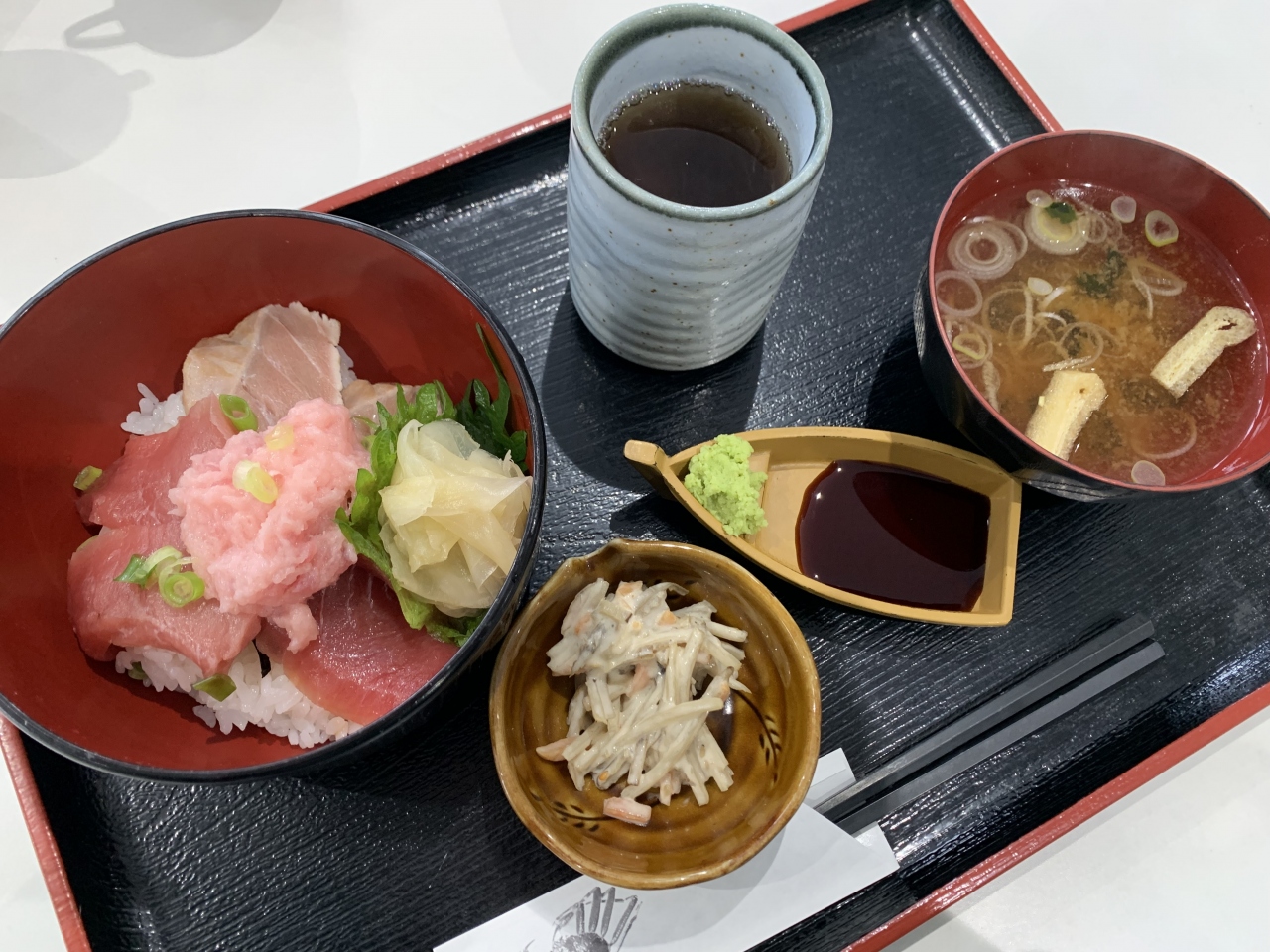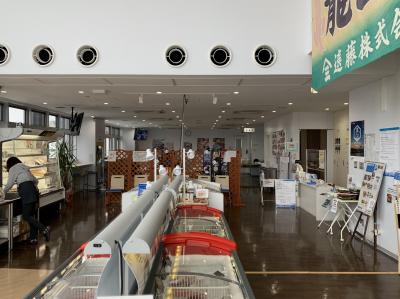 塩釜港の海沿い「塩釜市魚市場」に併設する施設です。年始は1月4日からここが開いていることを突き止め、ホテルはあえて朝食無しにしました。食券スタイルのシンプルな造りで市場関係者の食堂という感じですが、一般の人も全然OKです。私は、日替わり定食の「ミックスフライ定食」(830円)。アジとマグロは具が肉厚で美味かったです。妻は「マグロ丼」(1000円)、4種のマグロの具がごはんを覆い、赤身好きの妻はご満悦でした。併設の店では、塩釜港で水揚げされたメバチマグロの中トロや、三陸産の海の幸が豊富に揃い、発泡スチロールの中古ケースを無料でくれましたので冷凍物をたんまり買って帰りました。