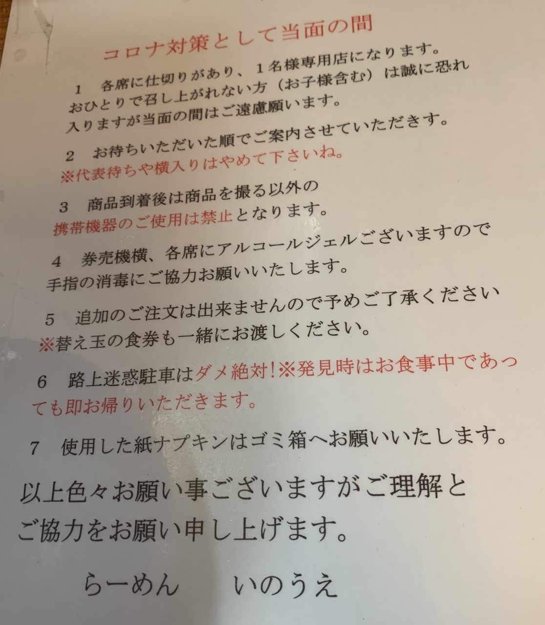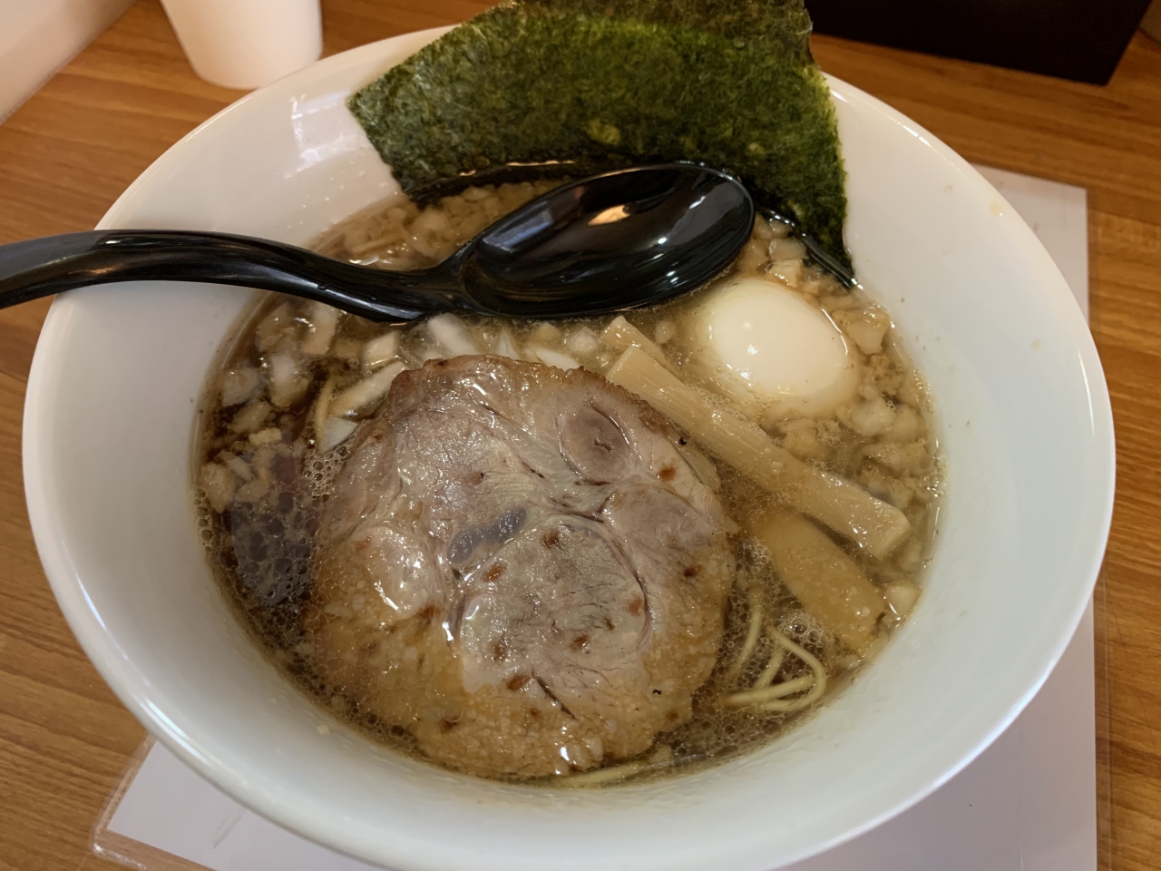 JR南武線尻手駅から徒歩約10分です。駐車場は無く、近隣にコインパーキングも少ないのでアクセスは良くないです(路上駐車は発見時即退場)。並ぶ際は代表待ち不可、席は1名様専用店です(2020年7月時点、各席に仕切り)。・・・と、色々と制約がありながらも美味いので来てしまいます。注文したのは基本の「らーめん」、煮干しと鶏ガラのスープで煮干しを強く感じます。柔らかいバラチャーシューは好み、スープが少なめなのはちょっと残念。総合的には美味い…が、塩分がかなり強いのでもう少しだけ控え、かつスープもう少し多めならなお良し・・・です。